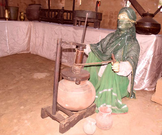 दही से छाछ को अलग करने के पुराने विधान और उसके उपकरणों (मथानी) को सिरिकित अपलक निहारती हैं। यहां की अनोखी पगड़ी और परंपरागत हुक्के के चलन ने तो जैसा उनका मन ही मोह लिया। उनकी निगाह उस महिला के घूंघट पर टिकी है, जो अपने मुख को ढककर छाछ निकालने के काम को अंजाम दे रही है।
