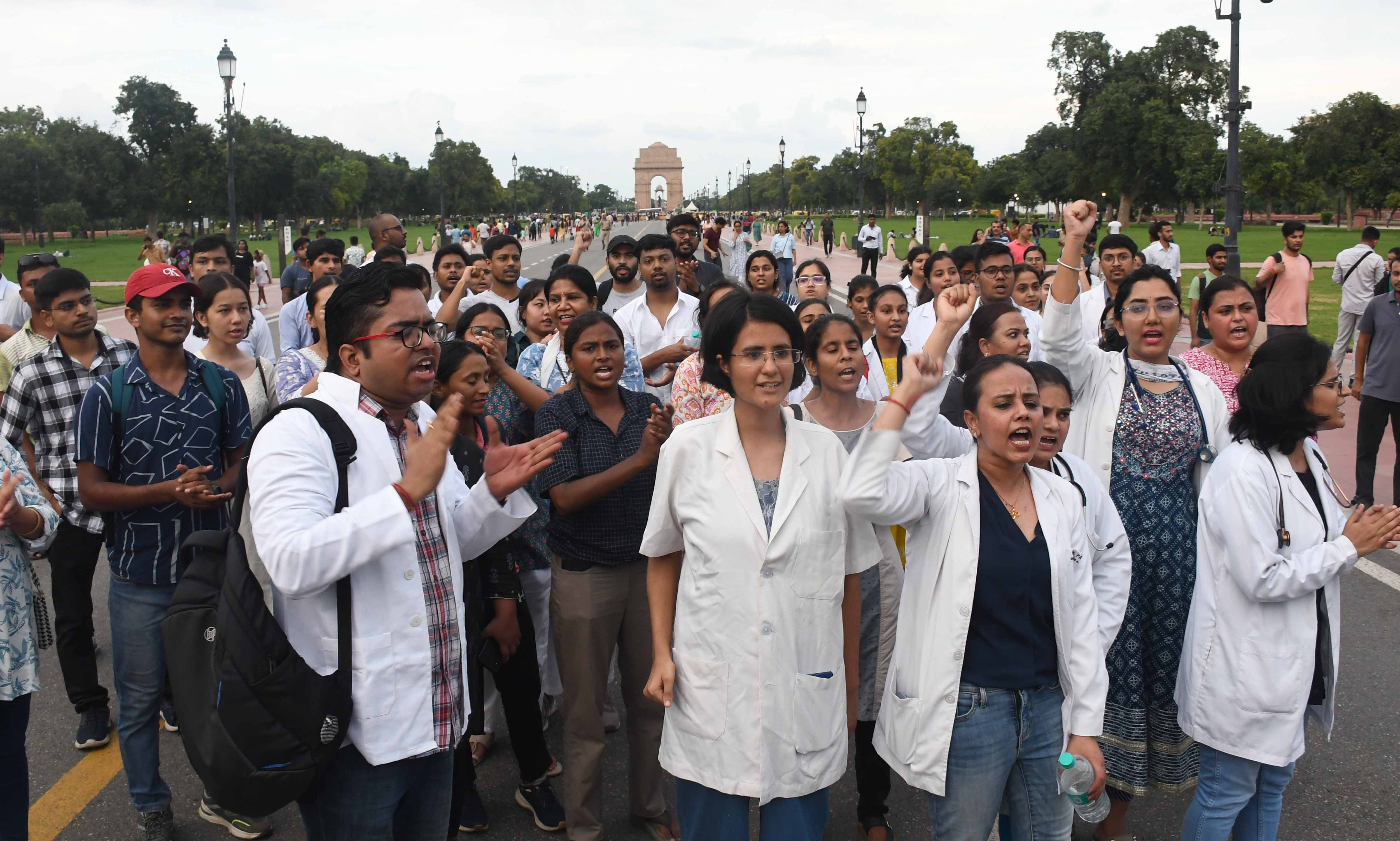 ईयर एंडिंग की फोटो कोलकाता में डाक्टर छात्रा से हुए दुष्कर्म के बाद इंडिया गेट के आगे प्रदर्शन करते डाक्टर व अन्य छात्र। जागरण आर्काइव