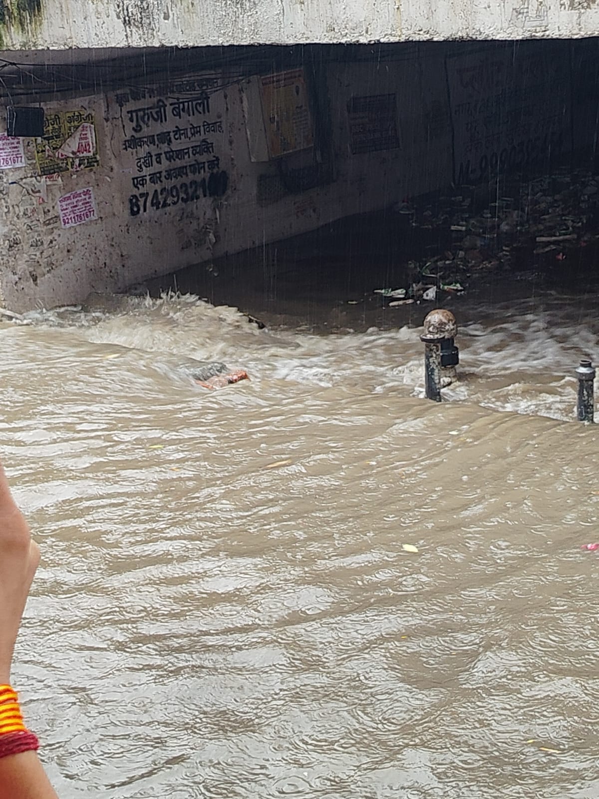 गाजियाबाद में लगातार हो रही वर्षा के बाद गौशाला अंडरपास जलमग्न हो गया। नगर निगम ने इस अंडरपास पर आवागमन बंद करा दिया है।