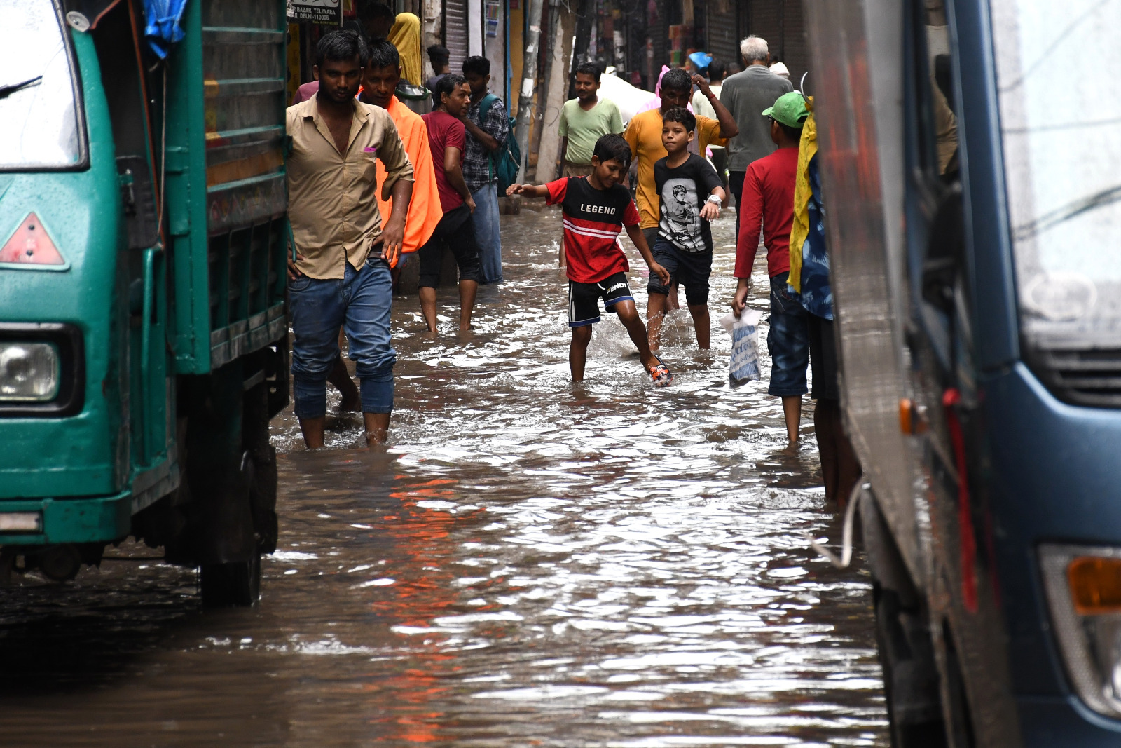 वहीं, सुबह से हो रही बारिश से पुरानी दिल्ली के सदर बाजार की गलियों में पानी जमा हो गया है और लोग जलभराव के बीच ही गुजरते रहे।