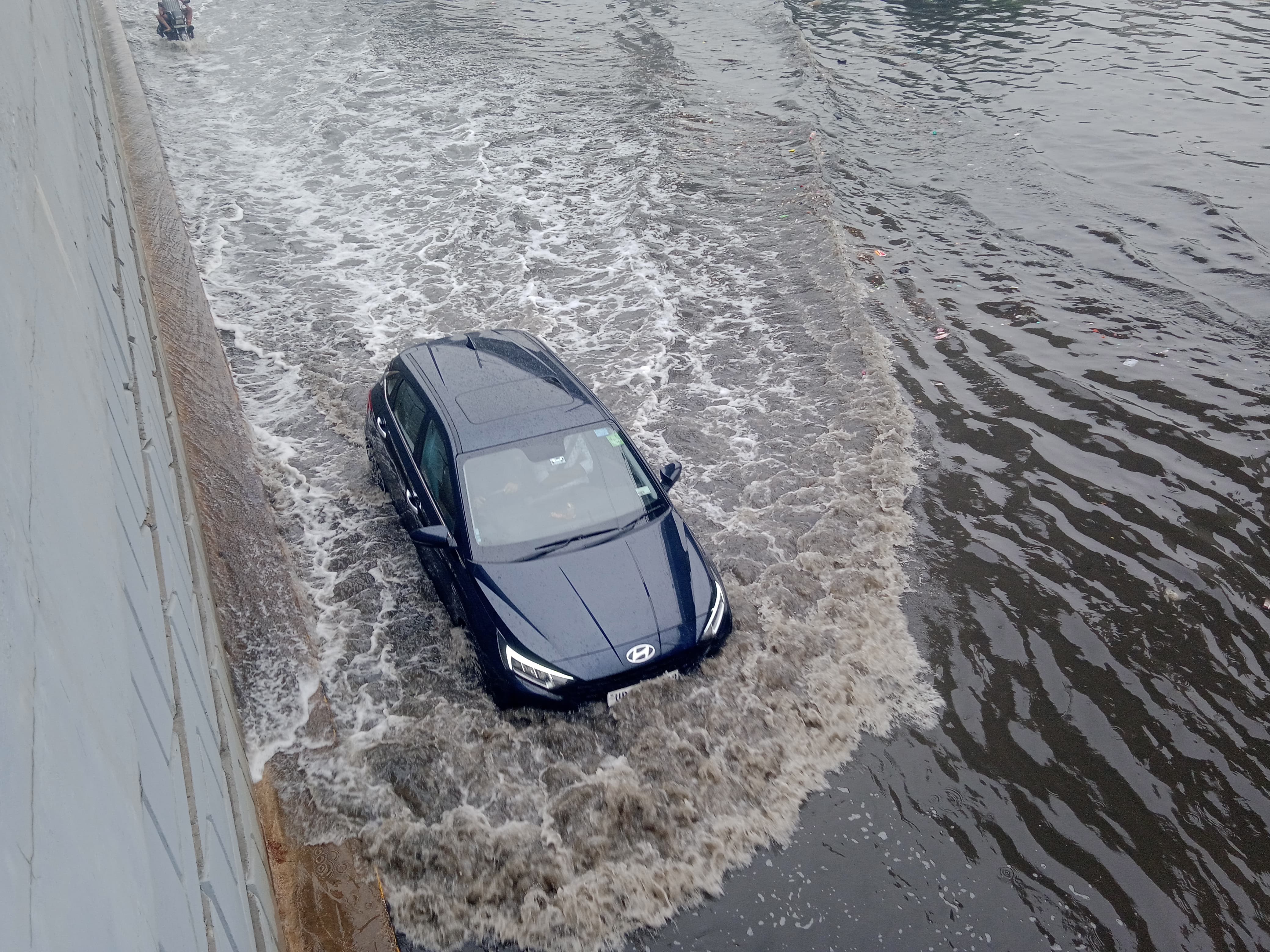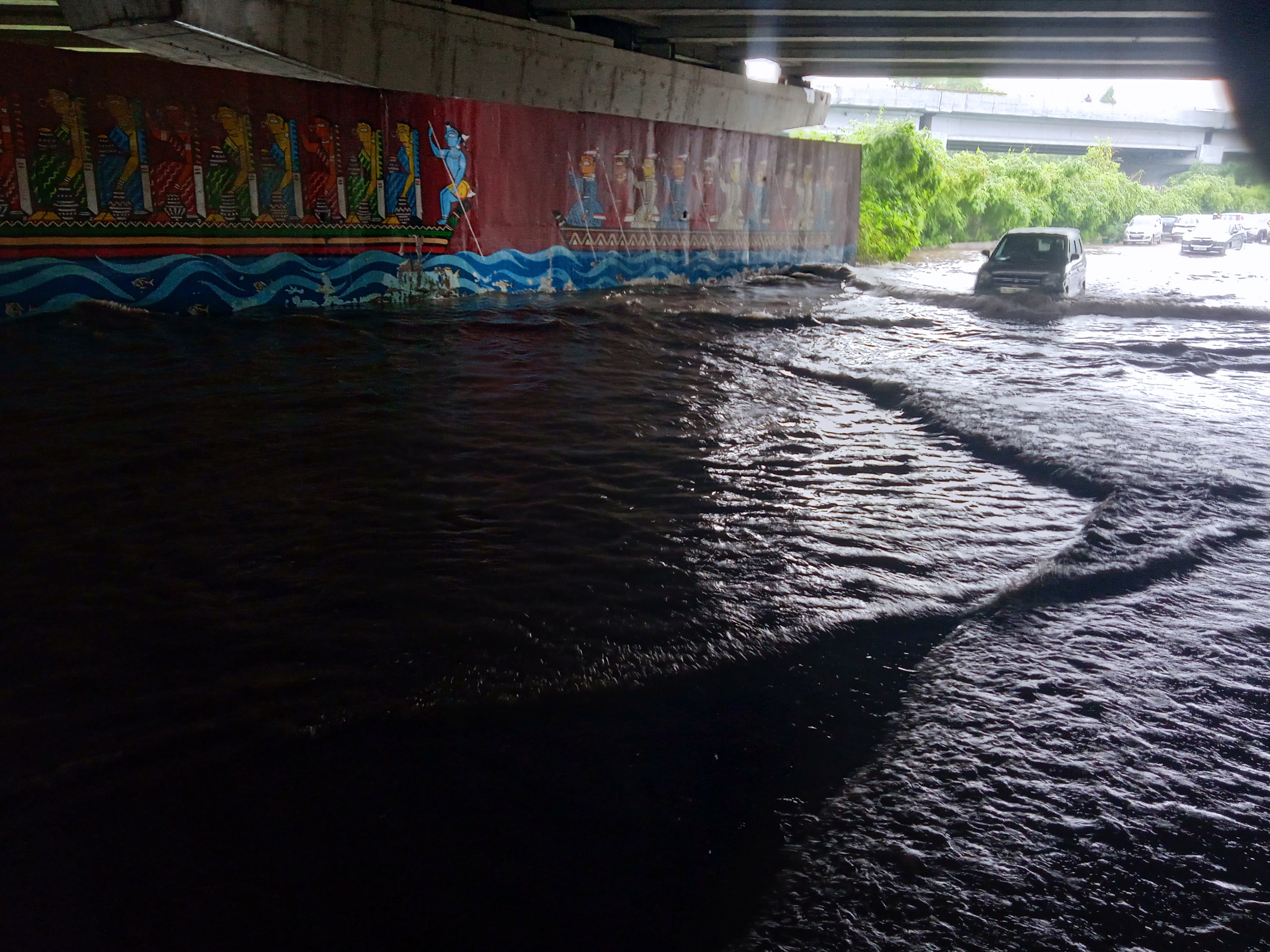 एलिवेटेड रोड पर जलभराव होने से लोगों को परेशानियों का सामना करना पड़ रहा है।