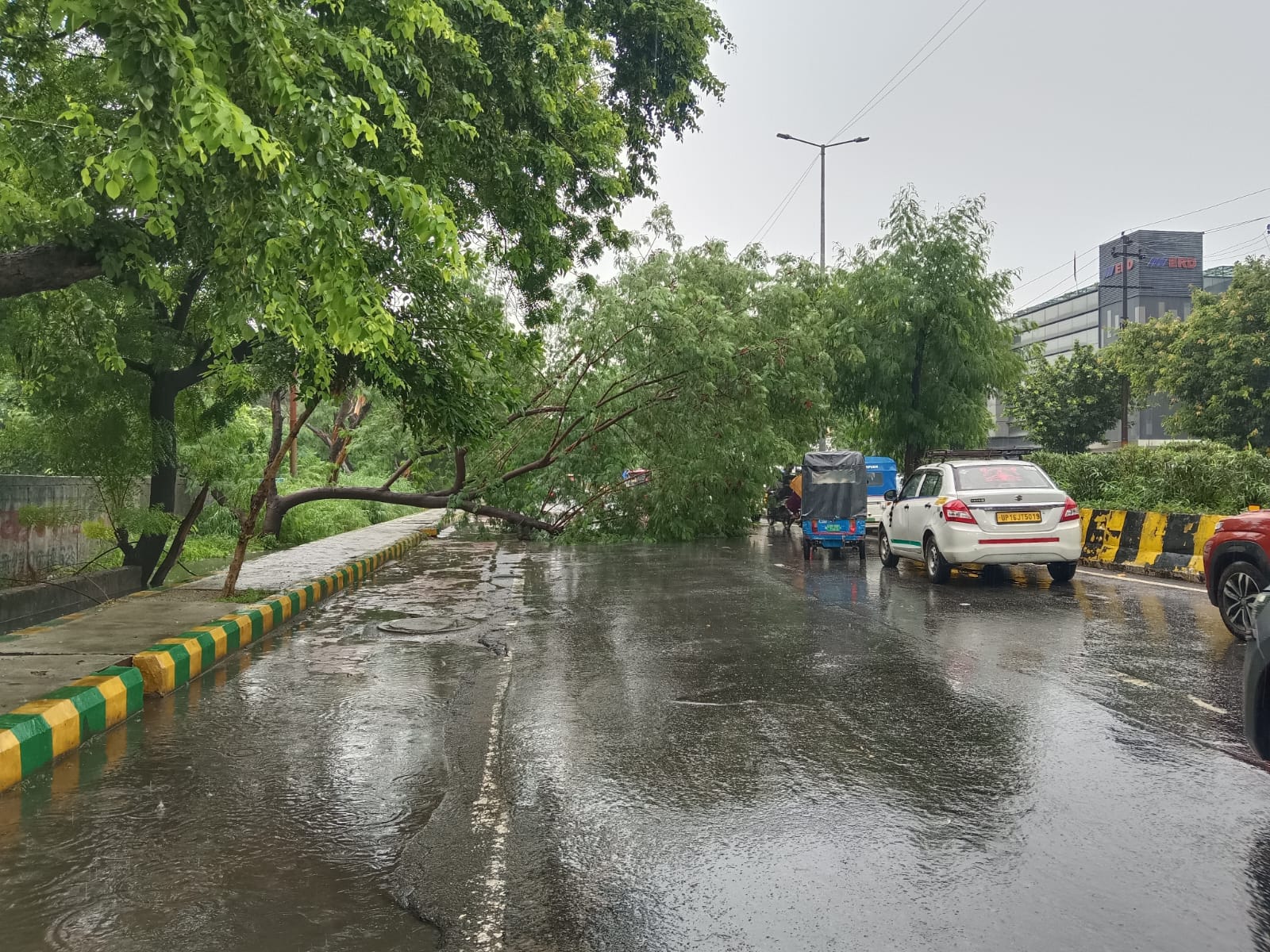 नोएडा में सेक्टर 59 में सड़क पर एक पेड़ गिर गया है। पेड़ गिरने से वाहनों को निकलने में काफी दिक्कत हो रही है।