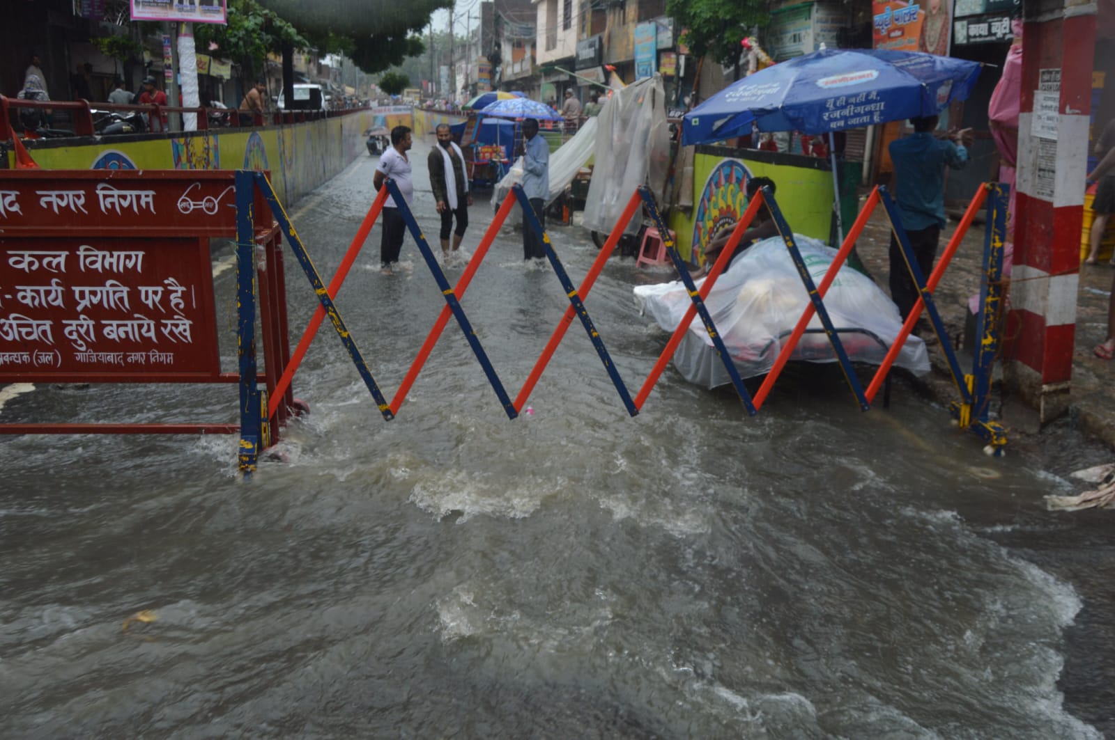 गाजियाबाद में इंदिरापुरम के काला पत्थर रोड पर भी जलभराव हुआ है।