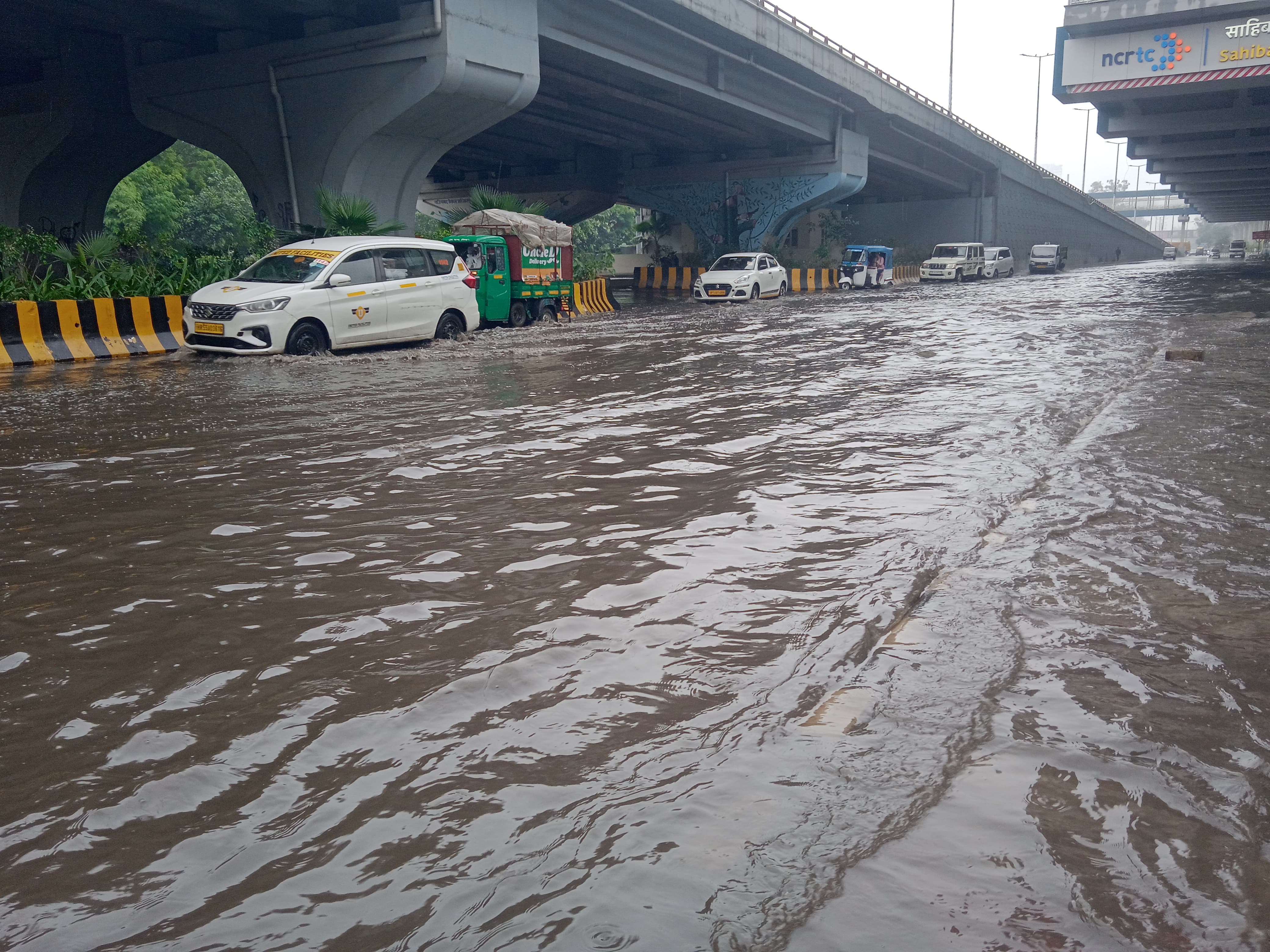 साहिबाबाद के पास लिंक रोड पर भी जलभराव हुआ है।