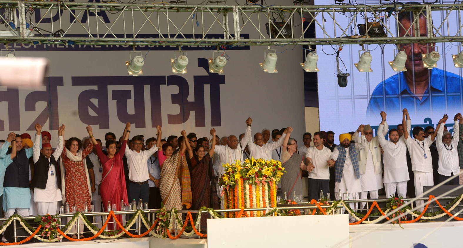 केजरीवाल की तस्वीर हटने पर शुरू हुई रैली, लोकसभा चुनाव से पहले दिखी गठबंधन की एकता में छिपी असहमति