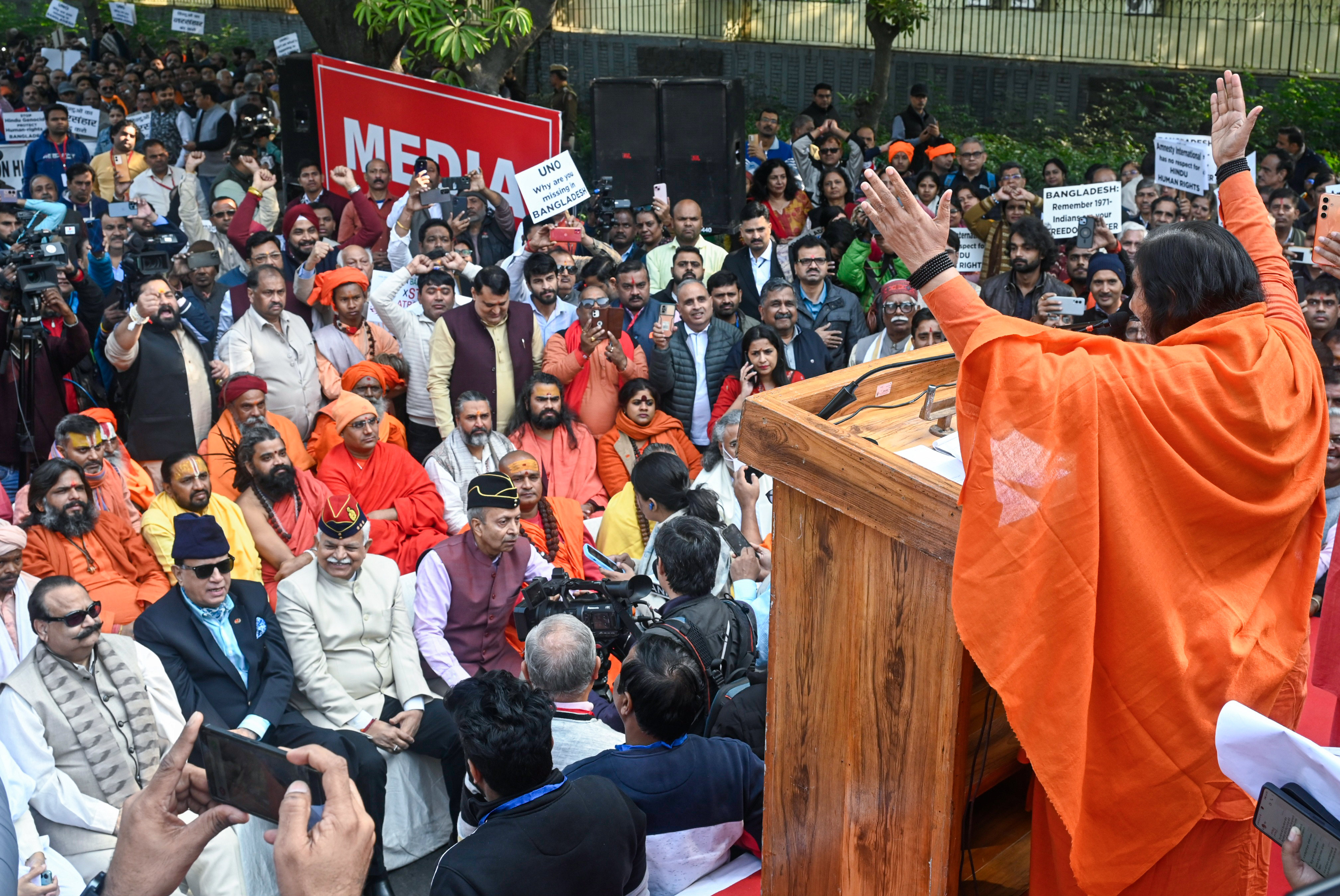 प्रदर्शनकारियों ने इस मामले में संयुक्त राष्ट्र मानवाधिकार परिषद (UNHRC) से मांग करते हुए तख्तियां ले रखी थीं। उन्होंने बांग्लादेश से देश में कथित हिंदू नरसंहार को रोकने का भी आह्वान किया।