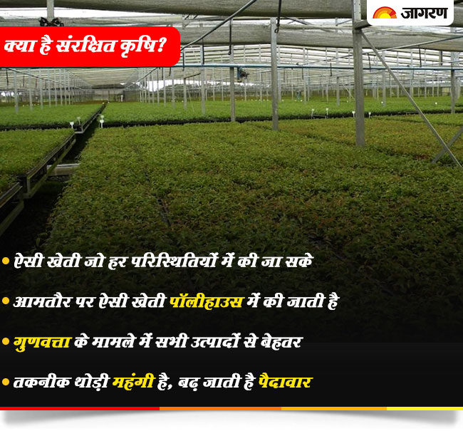 साधारण भाषा में यदि कहा जाए तो ऐसी खेती जो हर परिस्थितियों में की जा सके व उत्पाद को विविध आपदाओं से सुरक्षित रखती हो संरक्षित कृषि कहलाती है। आमतौर पर ऐसी खेती पॉलीहाउस में की जाती है, लेकिन इसे लगाने से जुड़ी तकनीक थोड़ी महंगी है। इसका एक सबल पक्ष यह है कि भले ही यह तकनीक महंगी हो, लेकिन एक बार इस तकनीक के लिए जरूरी ढांचे का निर्माण हो जाए तो यह कई वर्षों तक चलता है। इसके अलावा इसमें आम खेती की तुलना में एक चौथाई से भी कम जमीन का इस्तेमाल किया जाता है, लेकिन इतनी ही जमीन में पैदावार पांच से छह गुणा तक अधिक हो जाती है।