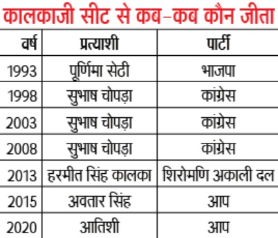 कालकाजी सीट पर झुग्गी व सिख मतदाताओं की निर्णायक भूमिका है। इन्हें साधने के लिए भाजपा व आप कोई भी मौका नहीं छोड़ रही है।