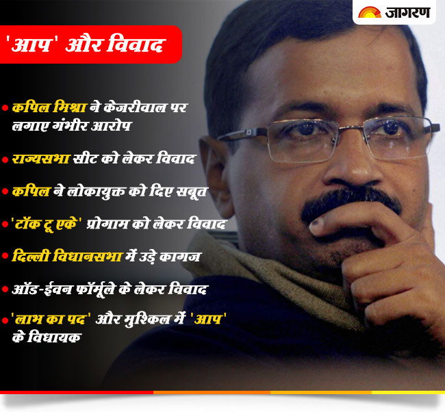 नई दिल्ली [जेएनएन]। 2015 में विधानसभा की 70 में से 67 सीटें जीतकर दिल्ली की सत्ता पर काबिज हुई आम आदमी पाटी (आप) का विवादों के साथ पुराना नाता रहा है। शायद ही कोई ऐसा मौका रहा हो जब 'आप' विवाद के बीच खड़ी न दिखाई दी हो। मुश्किलें लगातार बढ़ती रहीं और पार्टी के साथ सीएम केजरीवाल को भी एक साथ कई मोर्चों पर जूझना पड़ा।