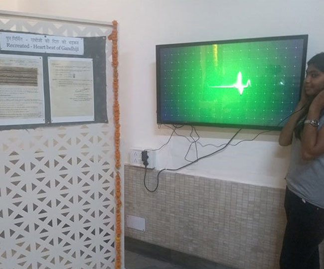 डॉ. सुबोध केरकर ने किया रिक्रिएट संग्रहालय के पदाधिकारियों ने बताया कि गोवा संग्रहालय में डॉ. सुबोध केरकर ने बापू की ईसीजी रिपोर्ट के आधार पर उनके दिल की धड़कन को रिक्रिएट किया। ऑडियो और विजुअल रूप में इसे रिक्रिएट किया गया। 20 सेकेंड तक लोग धड़कन सुन सकते हैं।