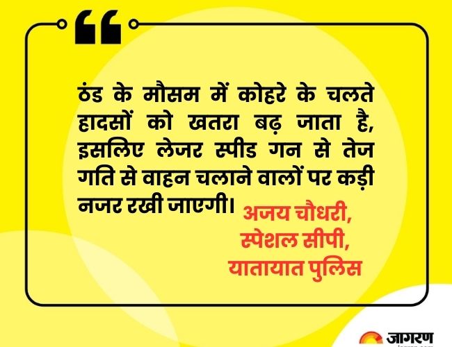 हमारी कोशिश रहती है कि किसी तरह से वाहनों से होने वाले हादसे कम से कम हों। इसको लेकर समय-समय पर योजनाओं को पुख्ता किया जाता है। ठंड के मौसम में कोहरे के चलते हादसों को खतरा बढ़ जाता है, इसलिए लेजर स्पीड गन से तेज गति से वाहन चलाने वालों पर कड़ी नजर रखी जाएगी। - अजय चौधरी, स्पेशल सीपी, यातायात पुलिस