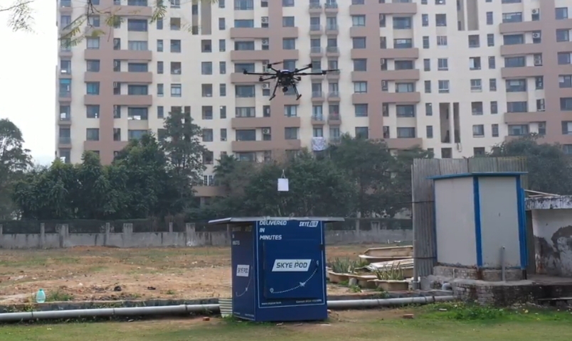 सोसायटी में डिलीवरी के लिए स्काई एयर ने स्काई पॉड तैयार किया है। इसमें सामान की डिलीवरी ऑटोमेटिक होती है, स्काई पॉड पर ड्रोन पैकेट को छोड़ देता। स्काई वॉकर यानी कंपनी का एक व्यक्ति पॉड से सामान उठाकर दरवाजे पर आकर सामान दे देता है।
