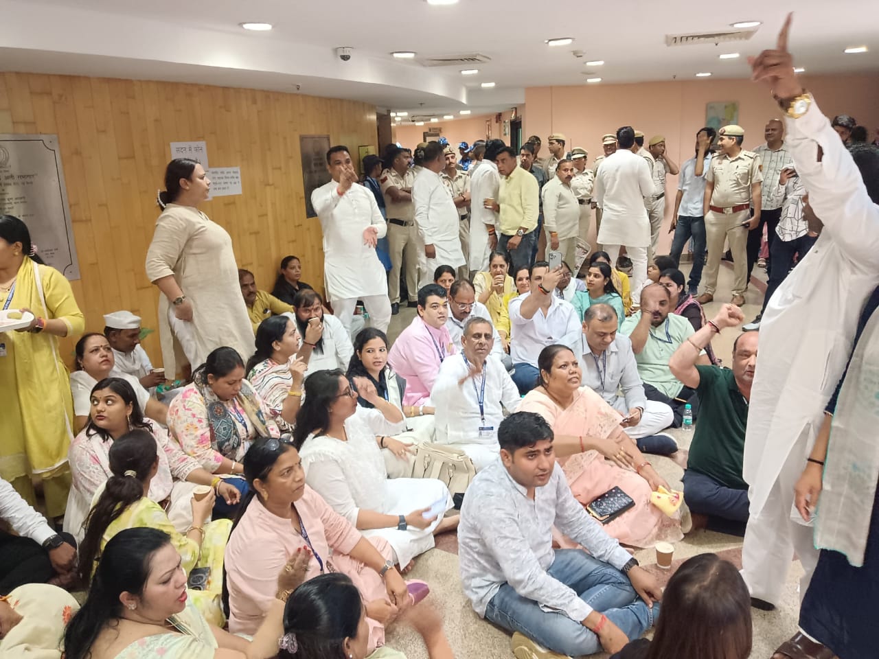 साथ ही निगम सदन के बाहर नारेबाजी शुरू कर दी थी। इस बीच महापौर निगम सदन में तीन बार पहुंची। महापौर ने अधिकारियों को निर्देश दिए कि पार्षदों को बिना तलाशी के सदन के अंदर आने की अनुमति दी जाए और सदन की बैठक को महापौर डॉ. शैली ओबेराय ने 15 मिनट के लिए स्थगित कर दिया।