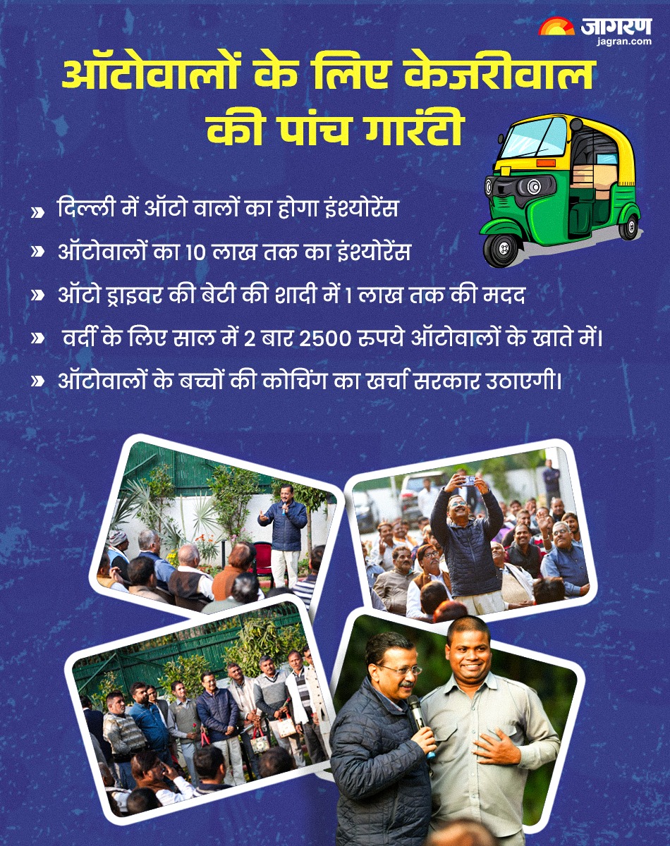 जागरण संवाददाता, नई दिल्ली।Kejriwal's 5 big announcements for Delhi auto drivers: राज्य ब्यूरो, नई दिल्ली। दिल्ली विधानसभा चुनाव की तैयारियों में जुटी आम आदमी पार्टी हर वर्ग को लुभाने के लिए अपनी रणनीति के तहत चुनावी जमीन उतर गई है।दिल्ली में 95 हजार आटो चालक हैं और ढाई लाख से अधिक इनके वोट हैं। आप इनके वोट के महत्व को समझ रही है।
