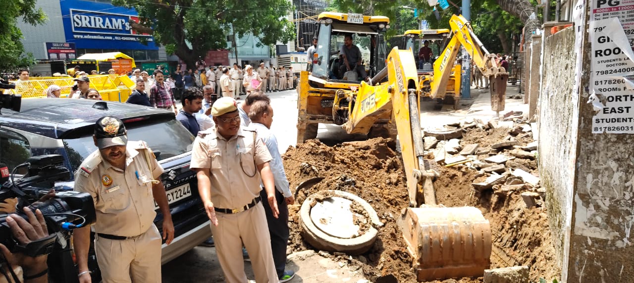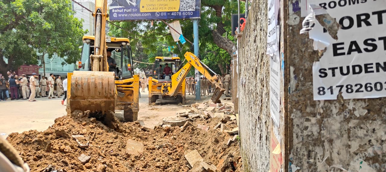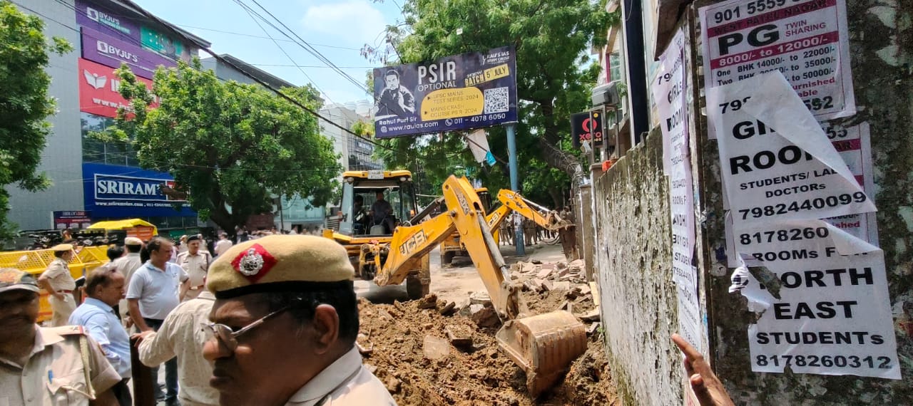 दिल्ली कोचिंग सेंटर हादसे में बड़ा एक्शन, मौके पर पहुंचा बुलडोजर; जेई बर्खास्त और एई को किया निलंबित