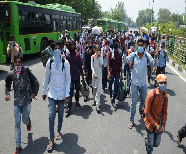 Migrant Labourers News दिल्ली-यूपी बॉर्डर पर प्रवासी मजदूरों की भीड़ देखी जा रही है। गाजीपुर में बड़ी संख्या में मजदूर जुट गए हैं। ...और पढ़ें