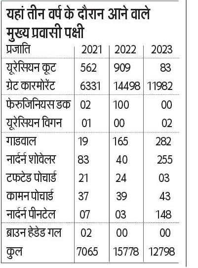 इस बार इन पक्षियों की संख्या कम है, हालांकि ऐसी उम्मीद है कि जनवरी तक स्थिति बेहतर होगी और इनकी संख्या में बढ़ोतरी होगी। यह पक्षी ज्यादातर चीन, यूरोप, अफगानिस्तान, मध्य एशिया, साइबेरिया, न्यूजीलैंड ओर मंगोलिया जैसे देशों से आते हैं।