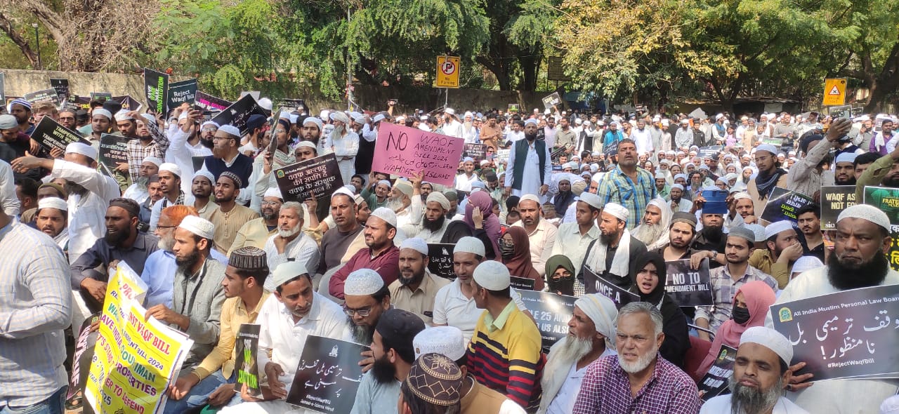 दिल्ली के जंतर-मंतर पर वक्फ बिल के खिलाफ मुस्लिम पर्सनल लॉ बोर्ड द्वारा धरना-प्रदर्शन किया जा रहा है। ऑल इंडिया मुस्लिम पर्सनल लॉ बोर्ड (AIMPLB) ने चेतावनी दी है कि अगर इस बिल को वापस नहीं लिया गया तो बड़ा आंदोलन किया जाएगा। उधर केंद्रीय अल्पसंख्यक मामलों के मंत्री किरेन रिजिजू ने कहा कि विपक्ष की ओर से देश में झूठ फैलाया जा रहा है।