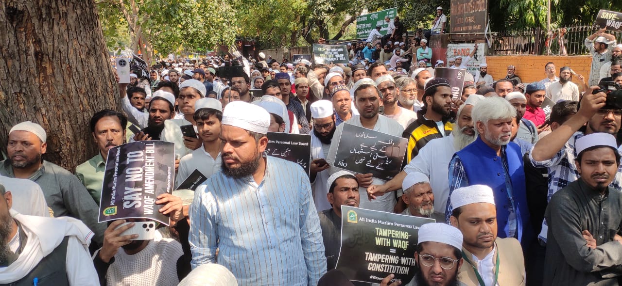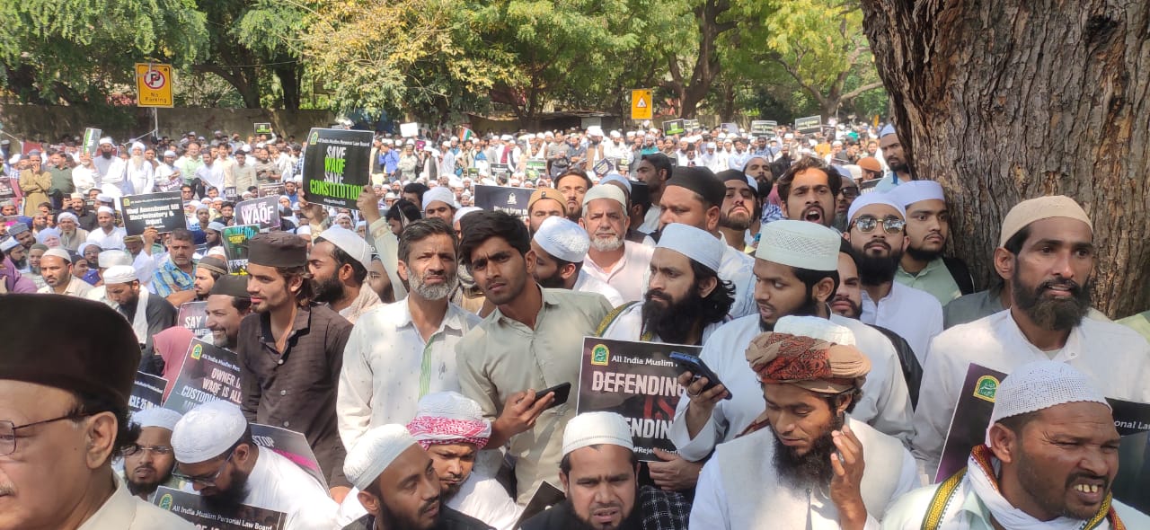 (वक्फ की संपत्ति को लेकर जंतर-मंतर पर ऑल इंडिया मुस्लिम पर्सनल लॉ बोर्ड के बैनर तले केंद्र सरकार के विरोध में प्रदर्शन करते मुस्लिम।)