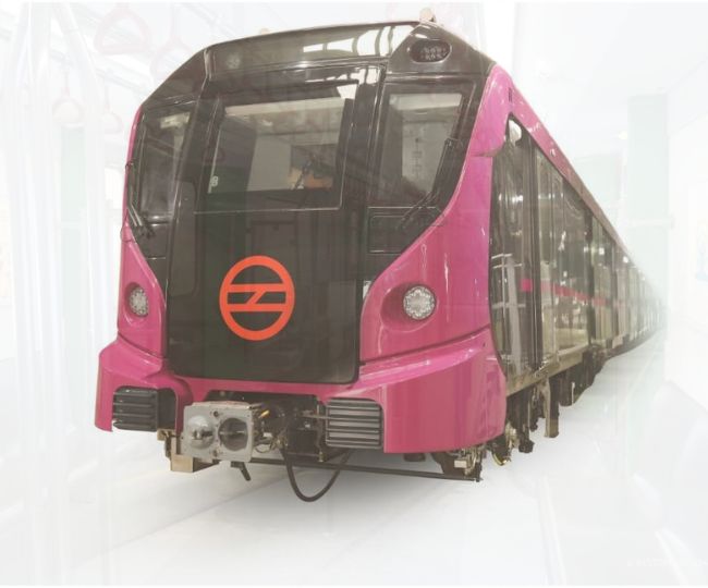 फेज चार में निर्माणाधीन पिंक लाइन के विस्तार काॅरिडोर की मेट्रो। सौजन्य:दिल्ली मेट्रो