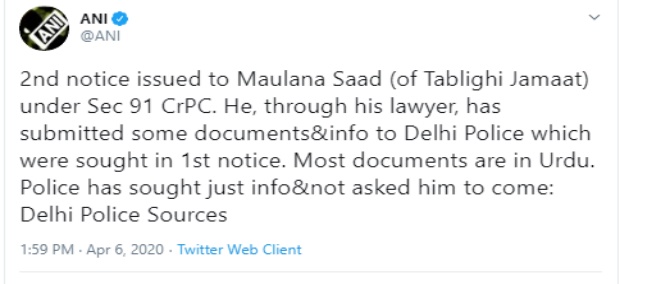 मिली जानकारी के अनुसार, पहली नोटिस के जवाब में मौलाना साद ने अपने वकील के माध्यम से दिल्ली पुलिस को कुछ दस्तावेज और जानकारियों सौंपी हैं। इनमें से ज्यादातर दस्तावेज उर्दू में हैं।