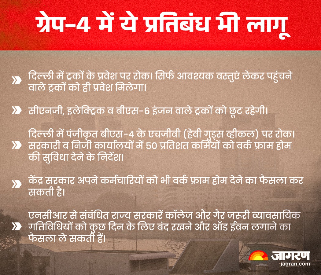 राजधानी के आनंद विहार में एक्यूआई 427, अशोक विहार में 430 और जहांगीरपुरी में 441 रिकॉर्ड किया गया। वायु गुणवत्ता प्रबंधन आयोग (CAQM) द्वारा एनसीआर में ग्रेप-4 की पाबंदियां लागू करने के बावजूद वायु प्रदूषण पर लगाम नहीं लग पा रही है।