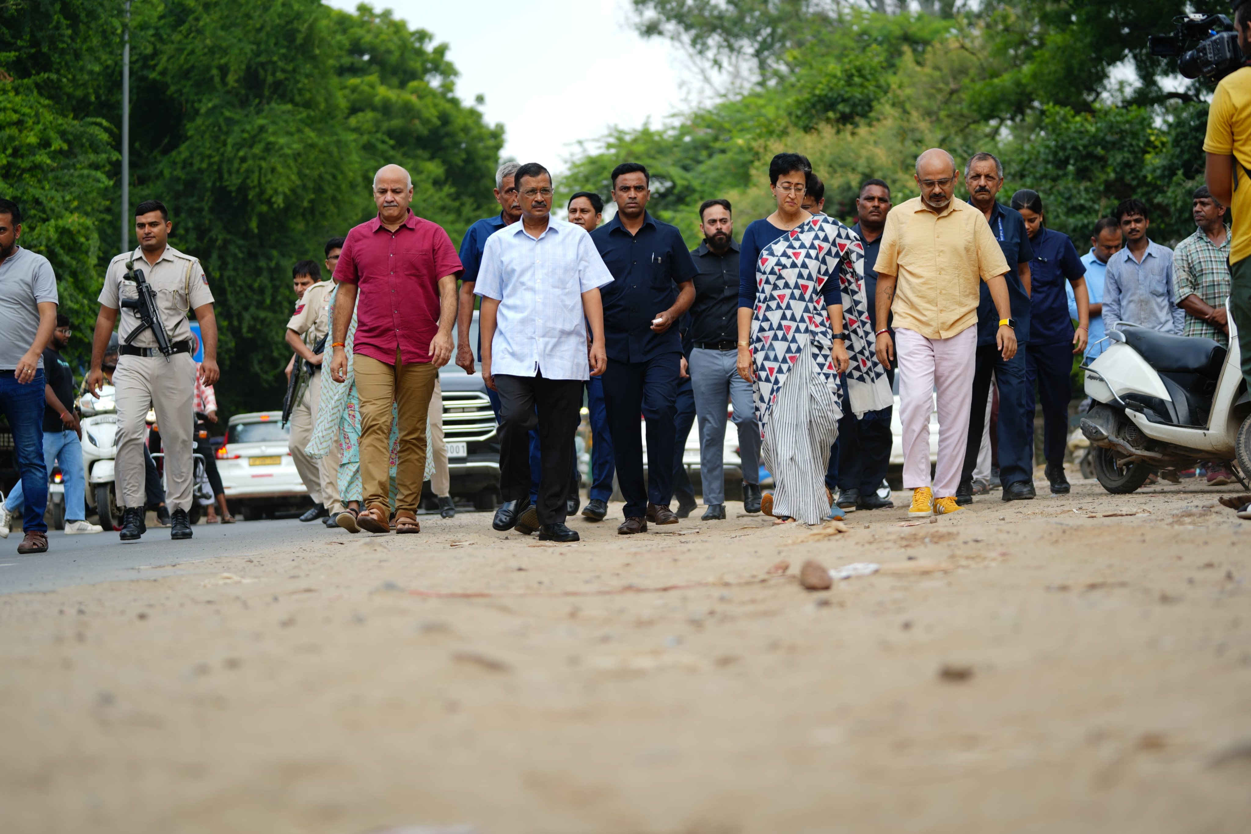 गुरुवार को आज केजरीवाल ने दिल्ली विश्वविद्यालय के नॉर्थ कैंपस में सड़क का निरीक्षण किया। इस दौरान उनके साथ दिल्ली की नई मुख्यमंत्री आतिशी और पूर्व शिक्षामंत्री मनीष सिसोदिया भी थे।