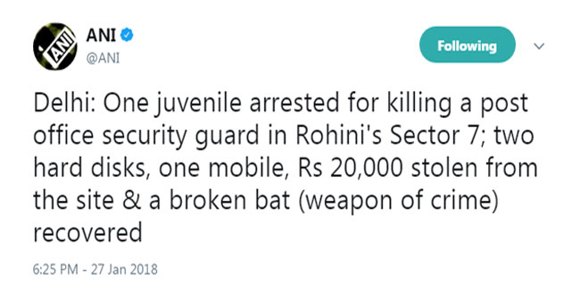 दिल्ली: रोहिणी में डाकघर के गार्ड की हत्या, एक नाबालिग आरोपी गिरफ्तार