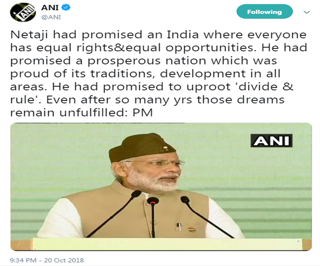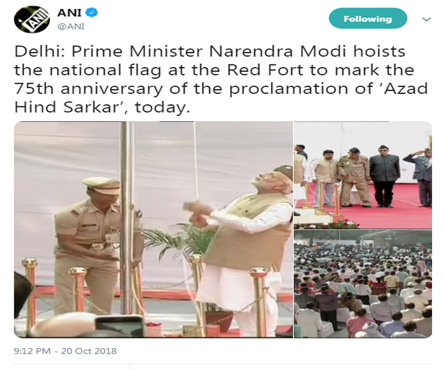 भाजपा सरकार नेताजी द्वारा स्थापित आजाद हिंद सरकार की 75वीं वर्षगाठ मना रही है। इसी उपलक्ष्य में लाल किले में रविवार को होने वाले कार्यक्रम में प्रधानमंत्री नरेंद्र मोदी शामिल हो रहे हैं।