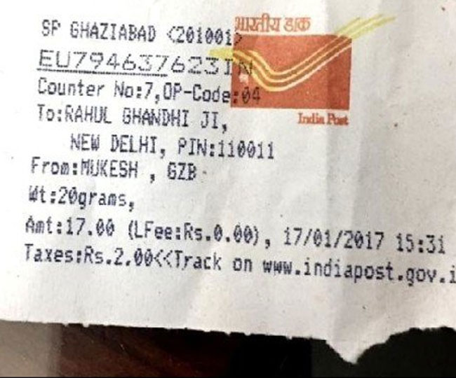 मुकेश ने मंगलवार को सेंट्रल बैंक ऑफ इंडिया की एमएमएच कॉलेज परिसर स्थित ब्रांच से दोपहर तीन बजे डीडी बनवाने के बाद उन्होंने साढ़े तीन बजे ड्राफ्ट राहुल गांधी को स्पीड पोस्ट कर दिया।