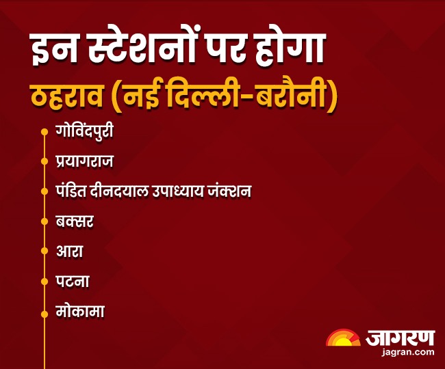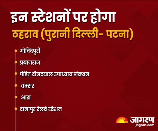 गोविंदपुरी, प्रयागराज, पंडित दीनदयाल उपाध्याय जंक्शन, बक्सर, आरा, पटना और मोकामा में यह रुकेगी। उसके बाद तय समय और रूट की ट्रेनें ही चलेंगी।