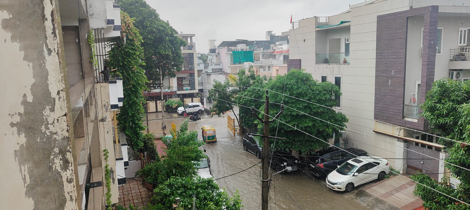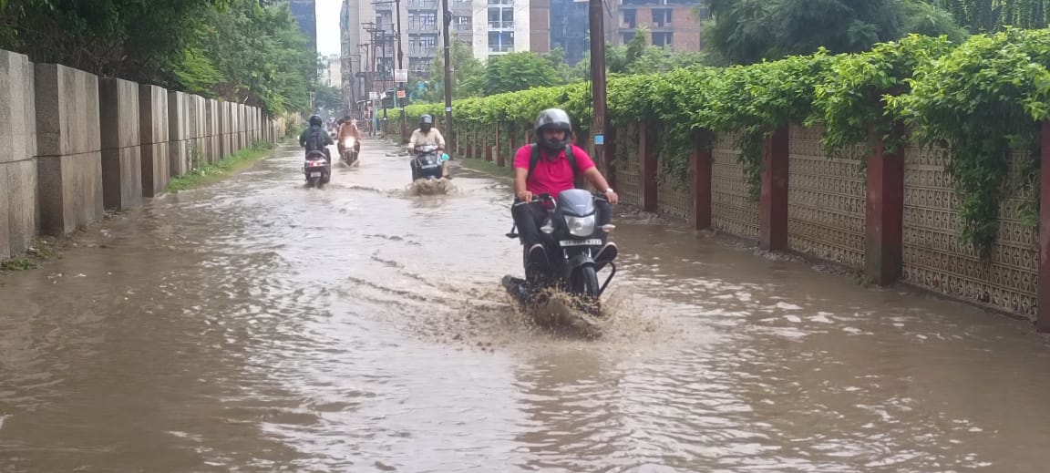 उधर, गुरुग्राम के सेक्टर-10ए की सड़कों पर जलभराव हुआ है। जलभराव होने से लोगों को परेशानी का सामना करना पड़ रहा है।
