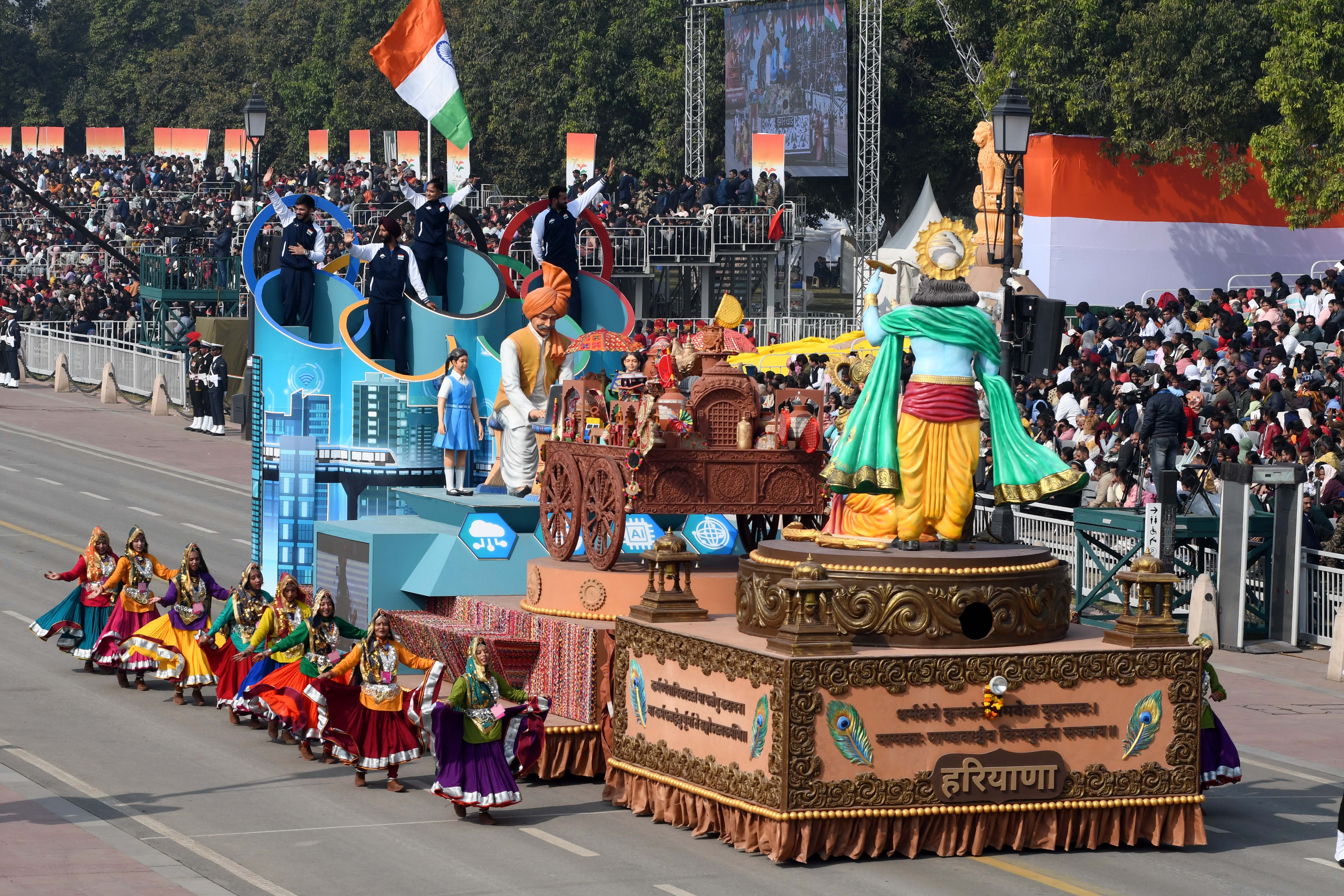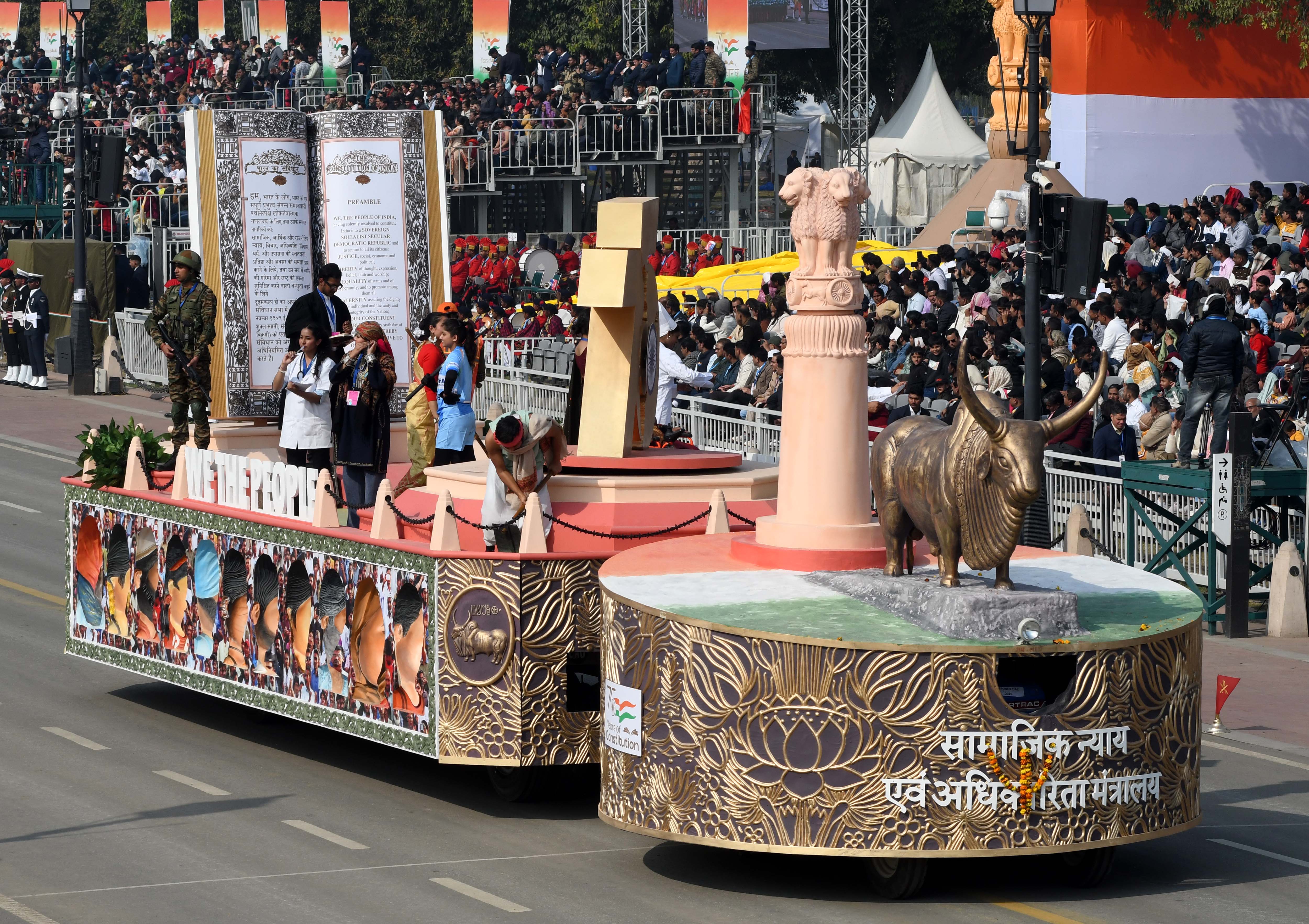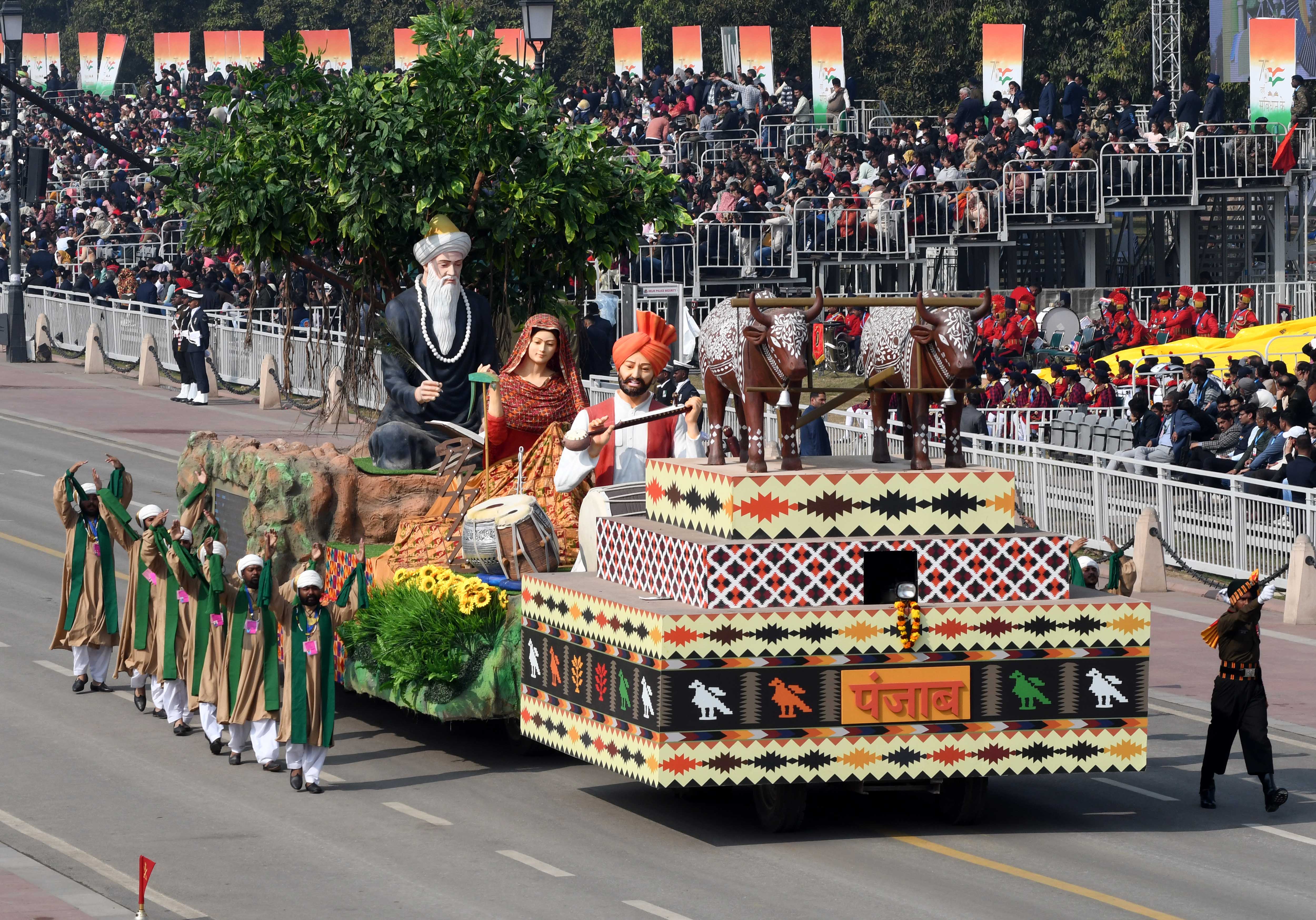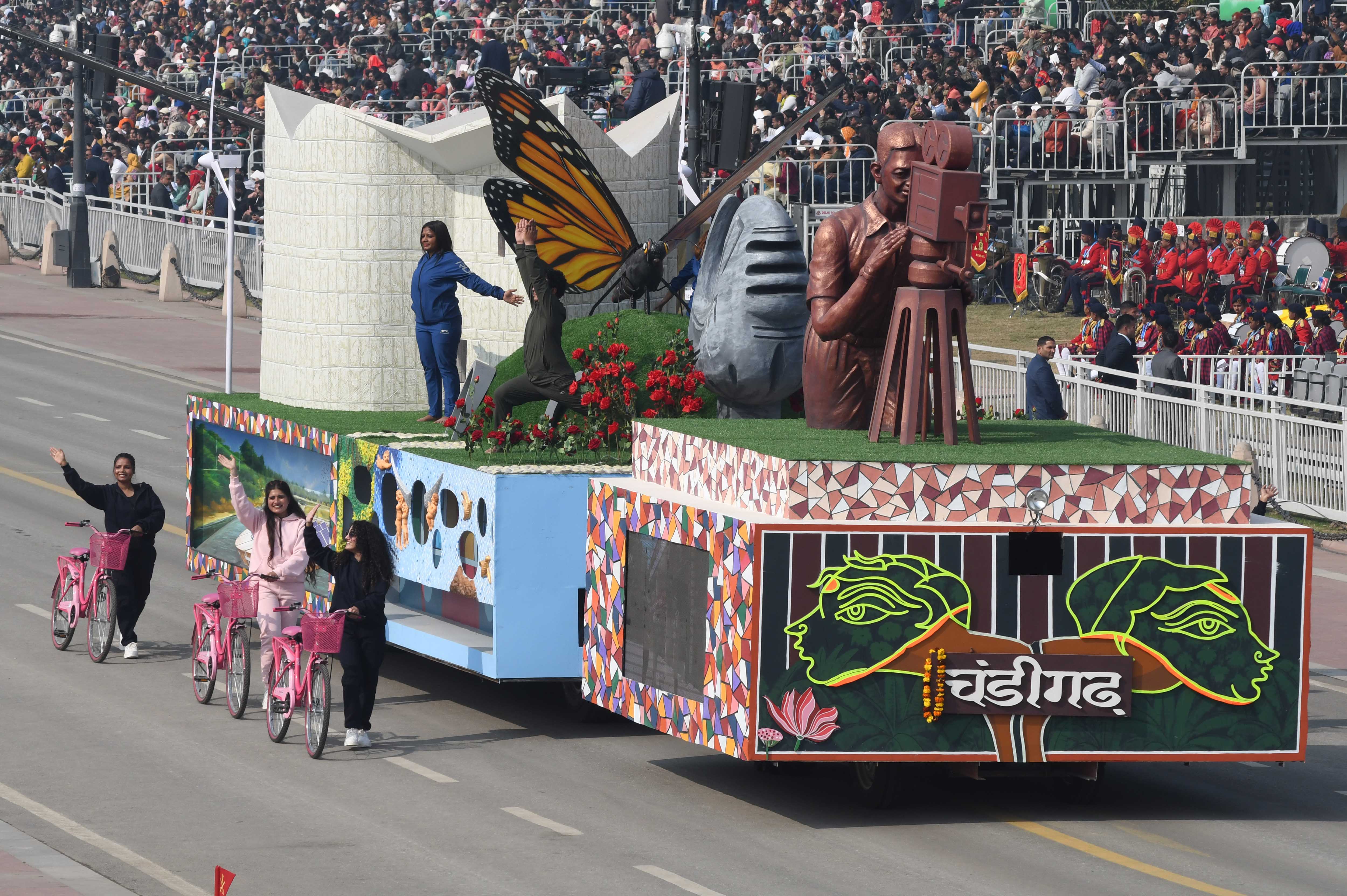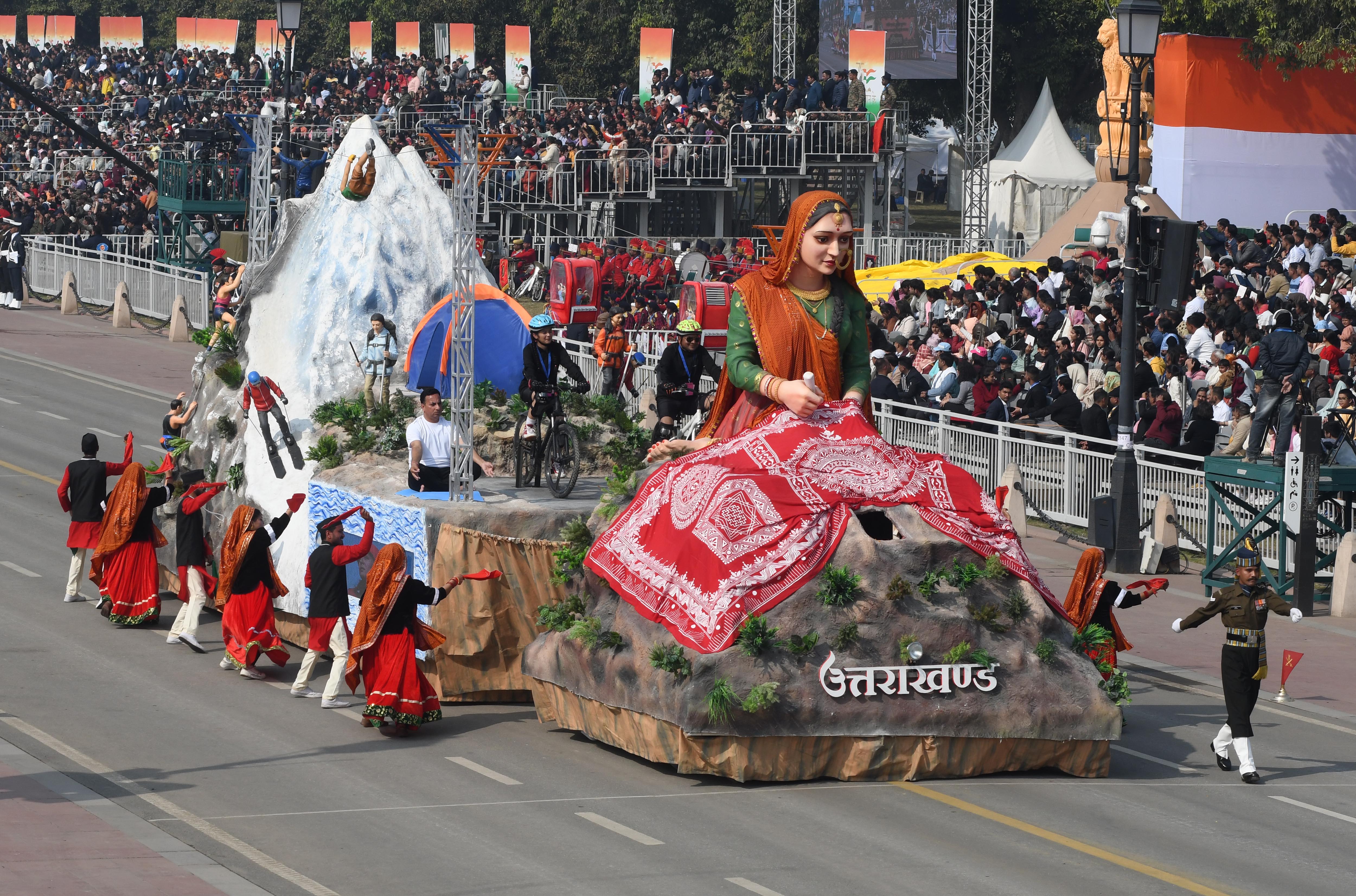 केंद्रीय संस्कृति मंत्रालय की झांकी में भारत की सांस्कृतिक विविधता और रचनात्मकता की झलक दिखाई दी।