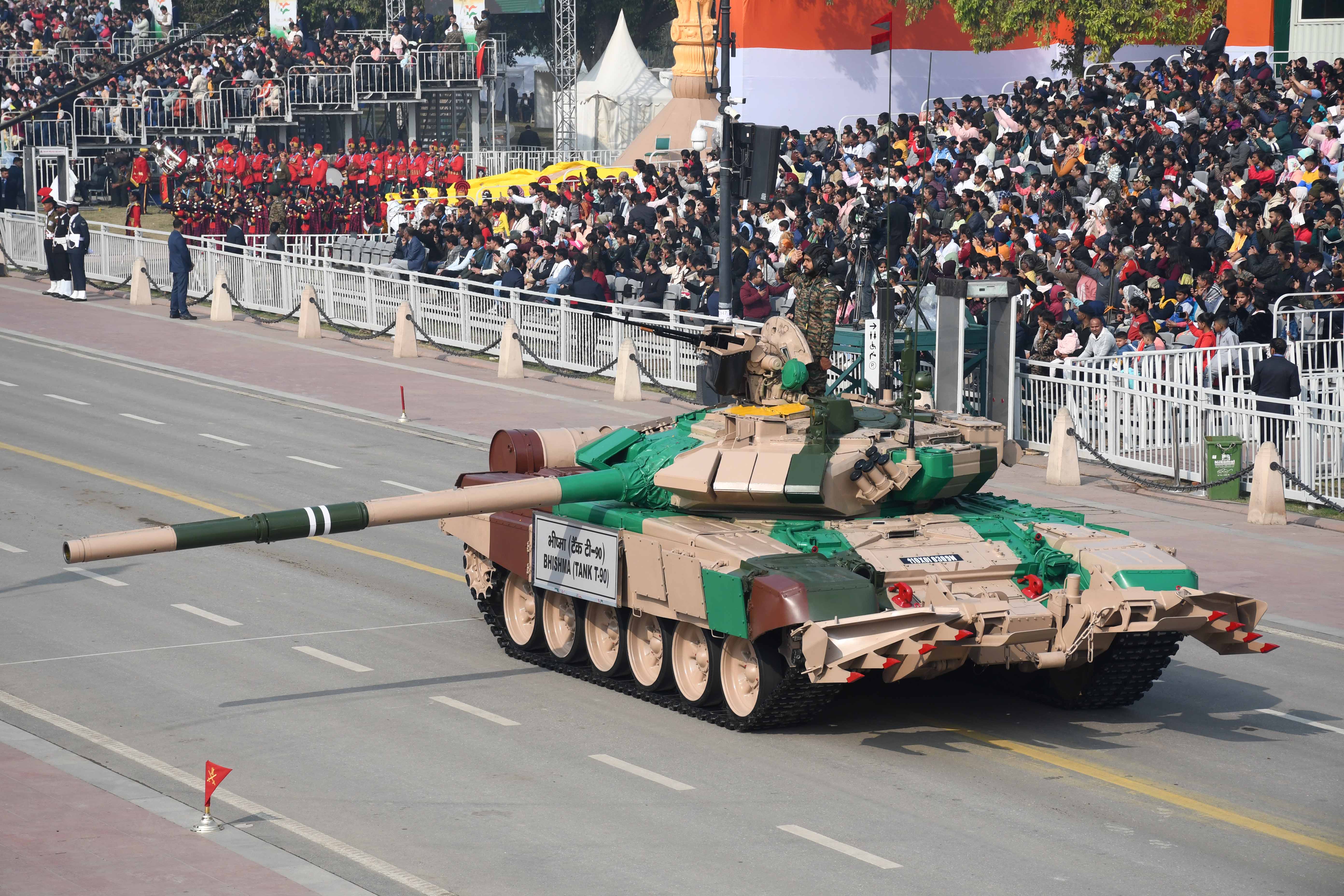 सेना के तीनों अंगों की संयुक्त झांकी में थल सेना का स्वदेशी मुख्य युद्धक अर्जुन टैंक, वायुसेना का तेजस एमकेआइआइ लड़ाकू विमान, उन्नत हल्के हेलीकाप्टर, नौसेना का विध्वंसक आइएनएस विशाखापत्तनम और दूर से संचालित विमान एक साथ जमीन, पानी और हवा में एक सिंक्रोनाइज आपरेशन का ऐसा प्रदर्शन किया, जिससे लगा कि युद्ध क्षेत्र में आए हो।