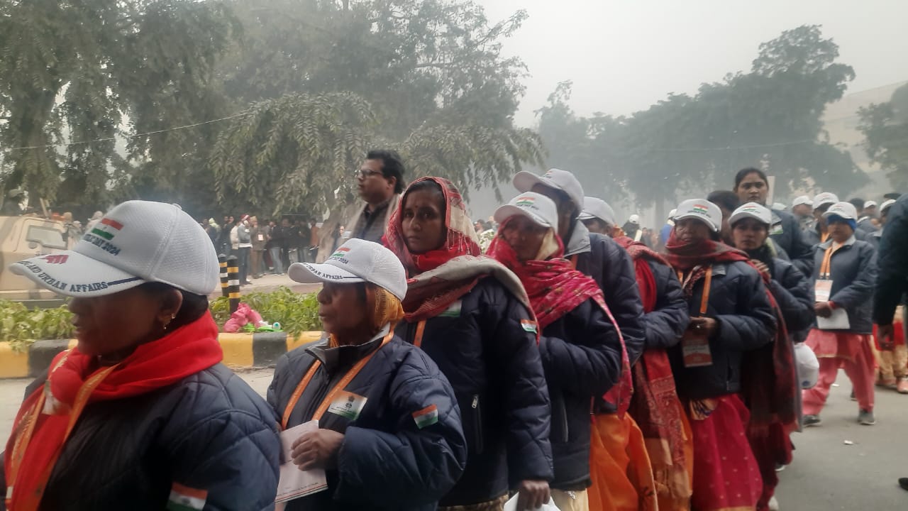 लोग सुबह 5 बजे या उससे पहले से ही लंबी कतारों में Kartavya Path या दिल्ली मेट्रो स्टेशनों पर देखे जा रहे हैं। हर कोई इस बात से उत्साहित है कि उसे गणतंत्र दिवस की परेड देखनी है।