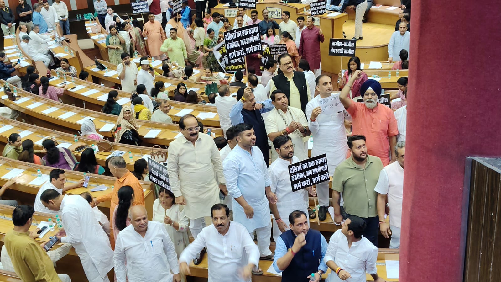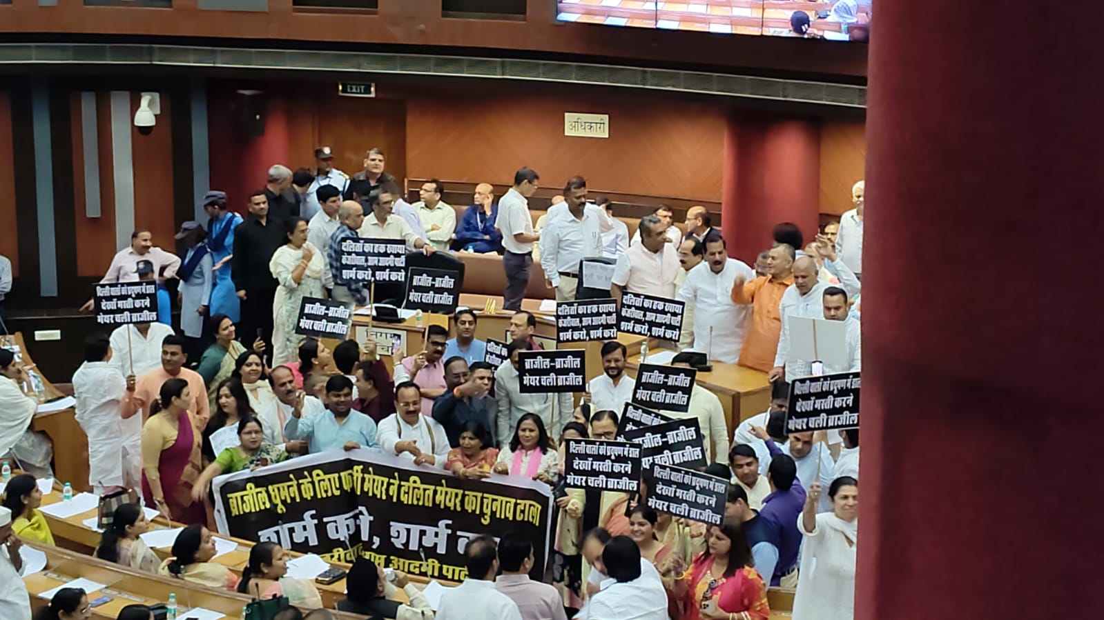 दिल्ली नगर निगम सदन की बैठक में हंगामा, मेयर के ब्राजील दौरे को लेकर भाजपा ने किया प्रदर्शन