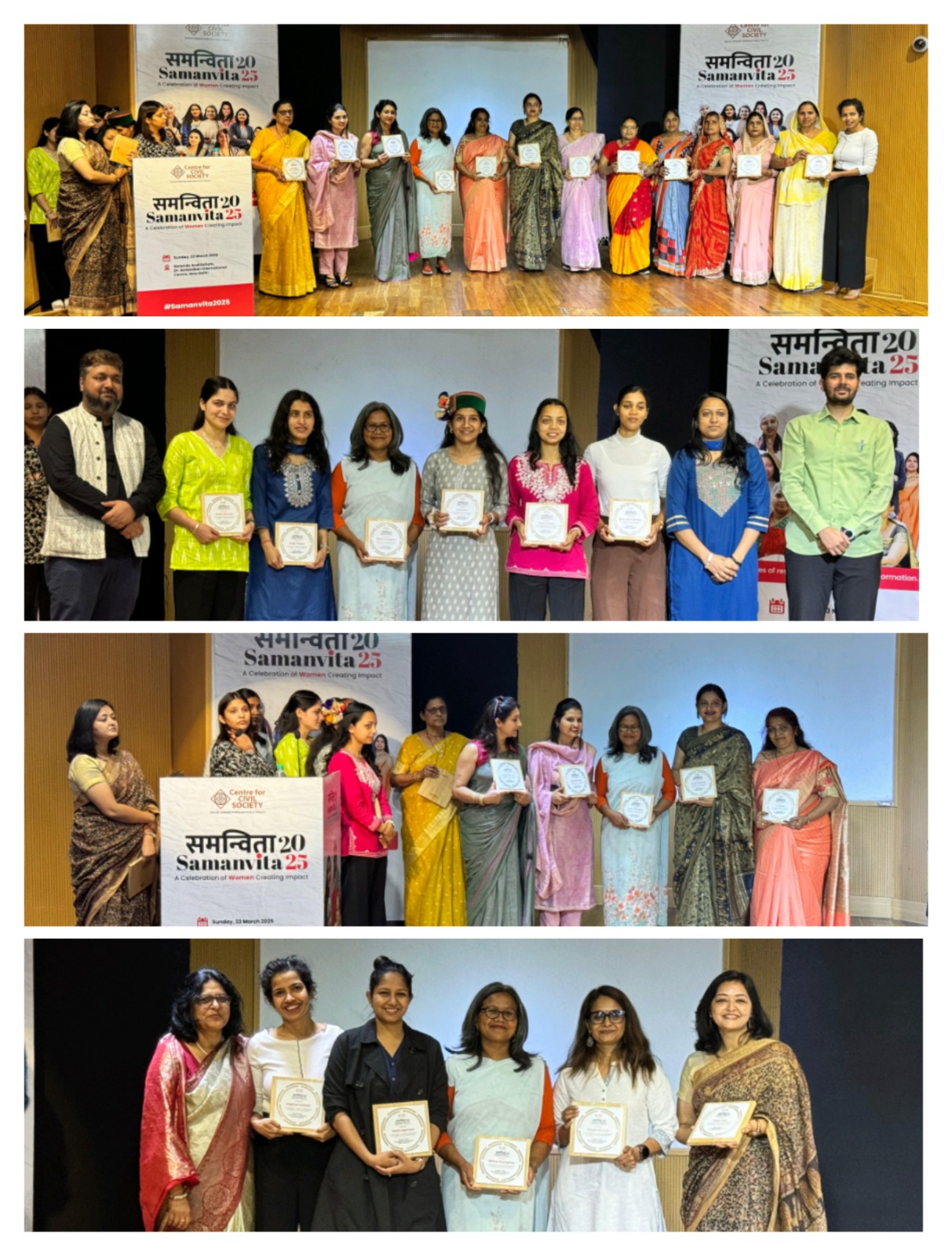 सेंटर फॉर सिविल सोसाइटी की ओर से समन्विता 2025 के दौरान सम्मानित होने वाली महिलाओं में अपनी मेहनत से से आत्मनिर्भरता की मिसाल पेश करने वाली सात स्ट्रीट वेंडर्स, शिक्षा के माध्यम से समाज को बेहतर बनाने में योगदान देने वाली नौ शिक्षिकाएं, संसाधनों के अभाव के बावजूद अपनी काबिलियत से मुकाम बना रही छह छात्राएं और नीति निर्माण व सामाजिक सुधारों में योगदान देने वाले चार सीसीएस एलुमनाई हैं।