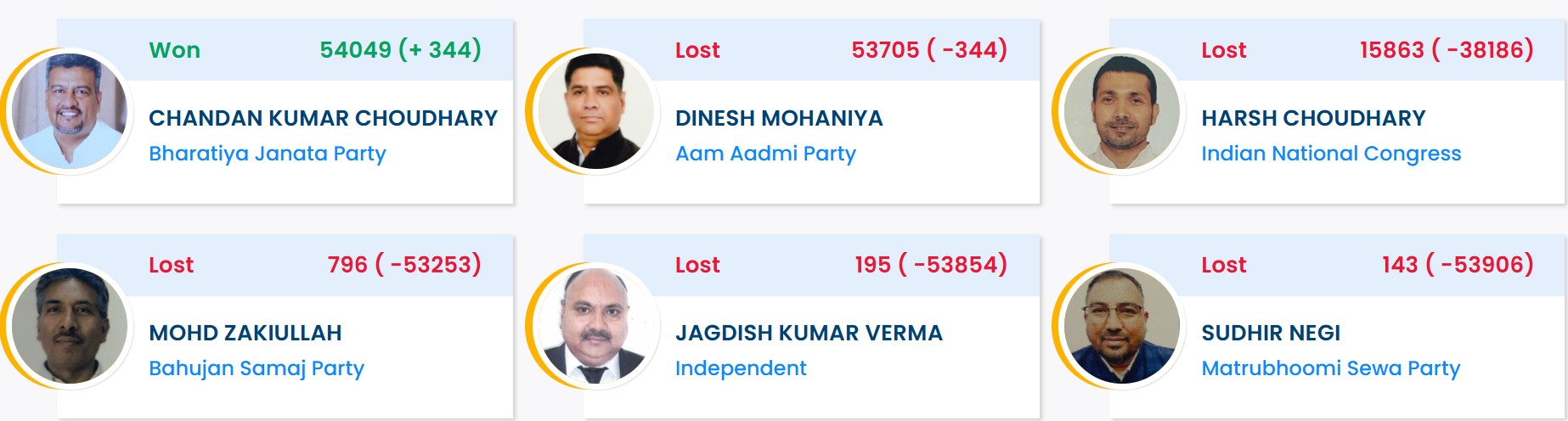 संगम विहार से AAP ने दिनेश मोहनिया को उम्मीदवार उतारा था तो वहीं पर भाजपा ने चंदन कुमार चौधरी पर भरोसा जताया था। कांग्रेस की बात करें तो हर्ष चौधरी को चुनावी मैदान में उतारा था।