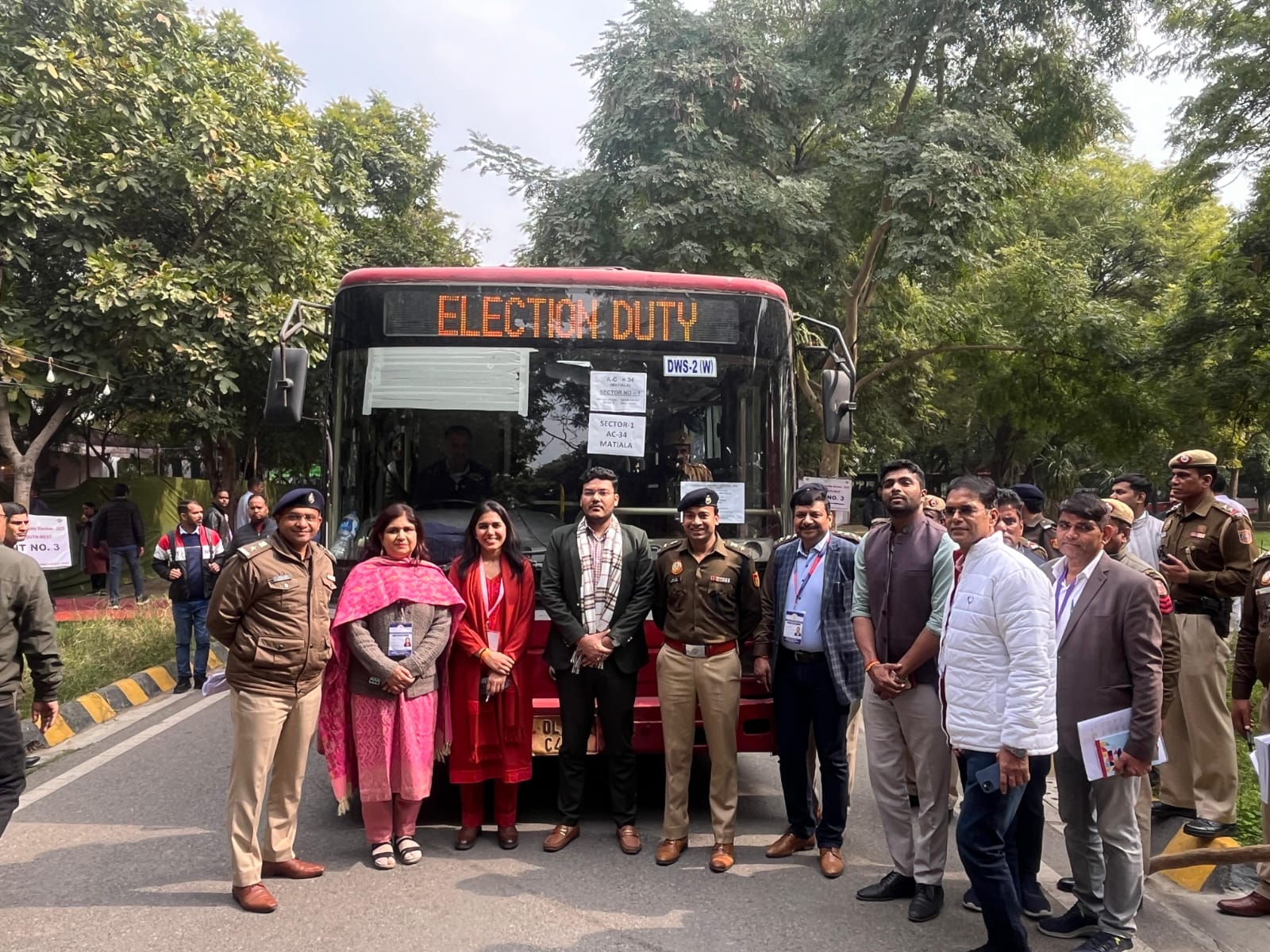 द्वारका सेक्टर 3 स्थित नेताजी प्रौद्योगिकी विश्विद्यालय से पोलिंग पार्टी को विदा करते जिलाधिकारी व पुलिस उपायुक्त