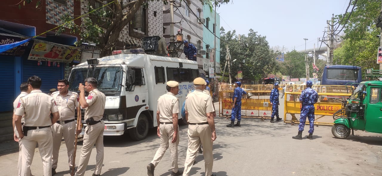 आने-जाने वाले लोगों पर पुलिस निगरानी रख रही है। कुशल सिनेमा से लेकर जहांगीरपुरी बड़ी मस्जिद तक चप्पे चप्पे पर पुलिस के जवान तैनात हैं। शोभा यात्रा रूट पर वाहनों की आवाजाही पर रोक लगा दी गई है।