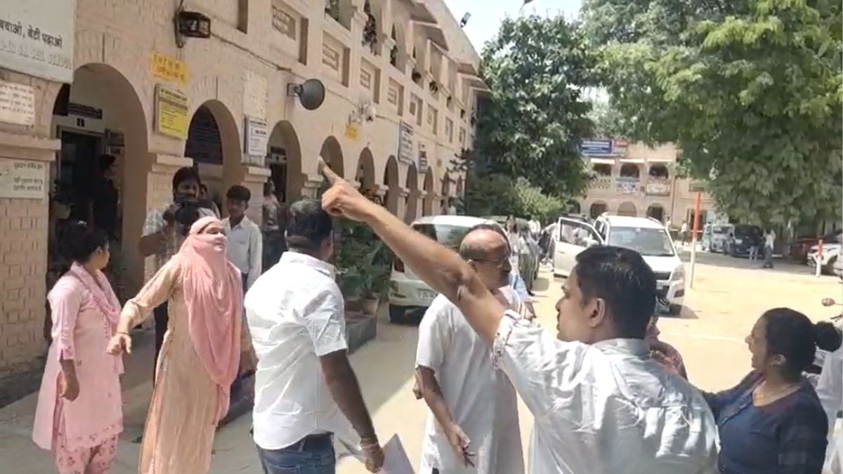 प्रिंसिपल की गिरफ्तारी की मांग कर रहे अभिभावक