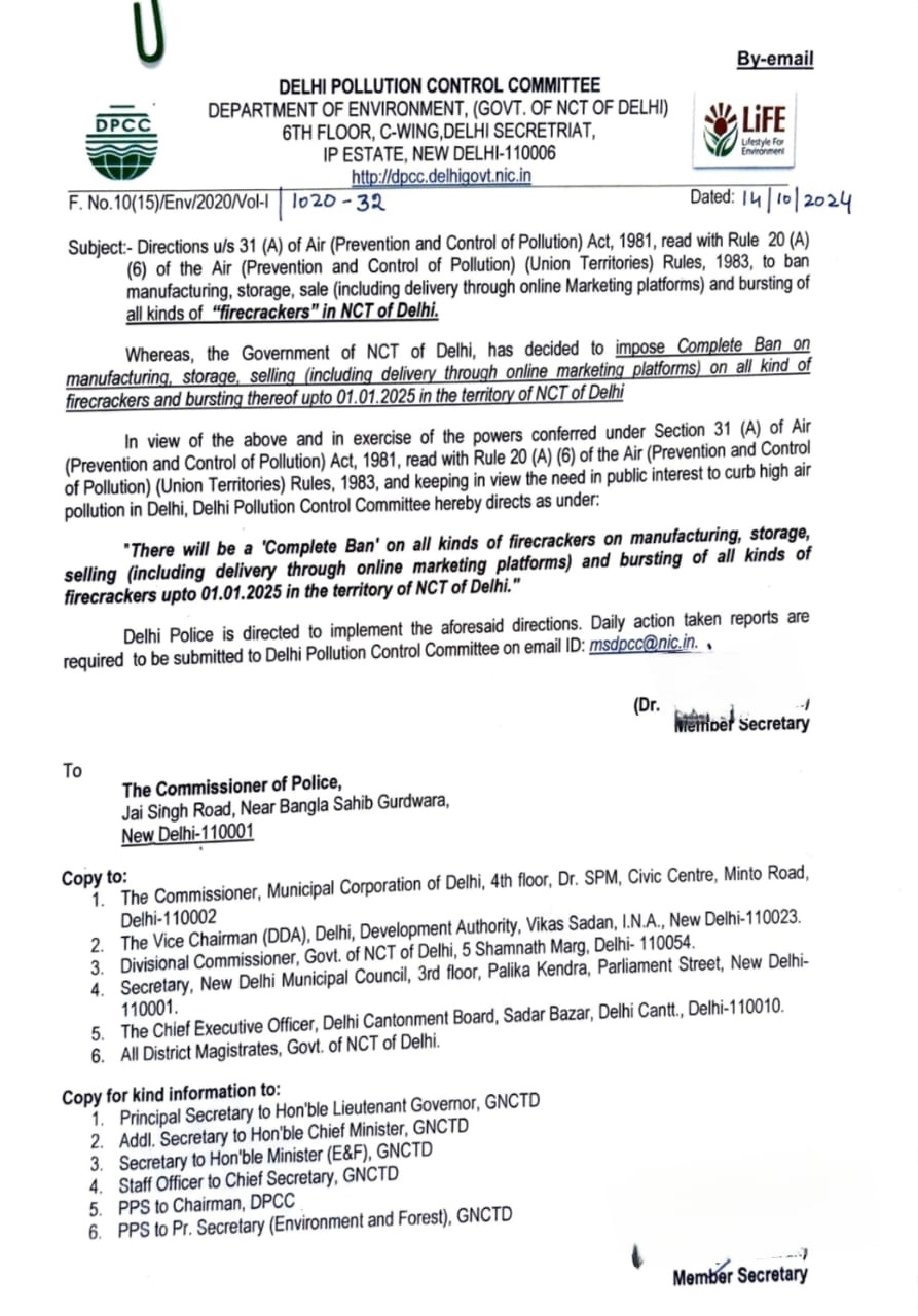 वहीं, प्रतिबंध को लेकर दिल्ली सरकार ने निर्देश जारी कर दिया है। सभी दिल्ली वालों से सहयोग का अनुरोध किया गया है।