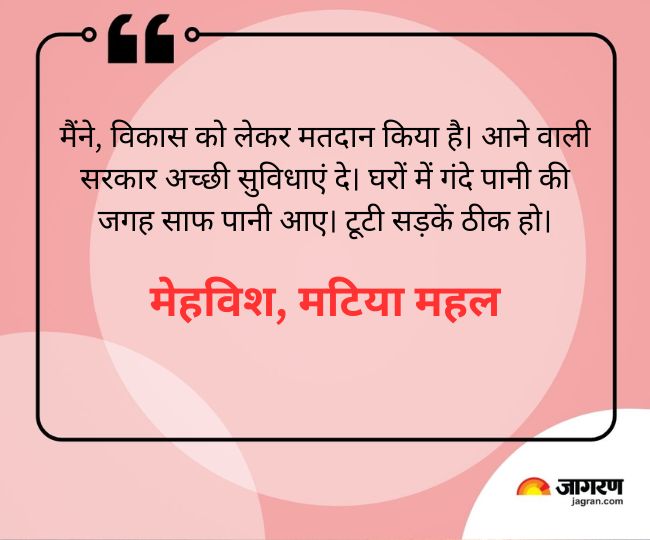 मैंने, विकास को लेकर मतदान किया है। आने वाली सरकार अच्छी सुविधाएं दे। घरों में गंदे पानी की जगह साफ पानी आए। टूटी सड़कें ठीक हो।