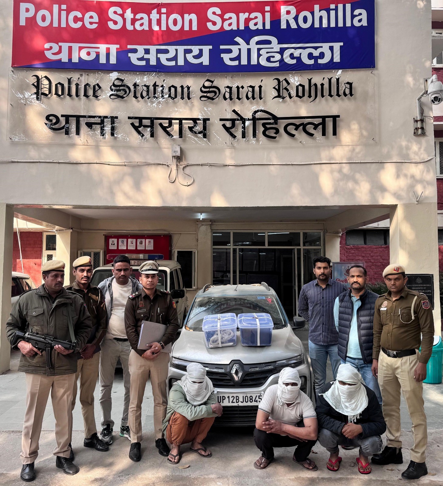 पुलिस की गिरफ्त में आरोपित और बरामद सामान व कार। सौजन्य दिल्ली पुलिस