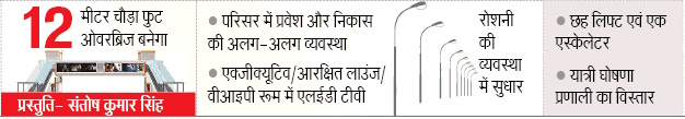 - 12 मीटर चौड़ा फुट ओवर ब्रिज।