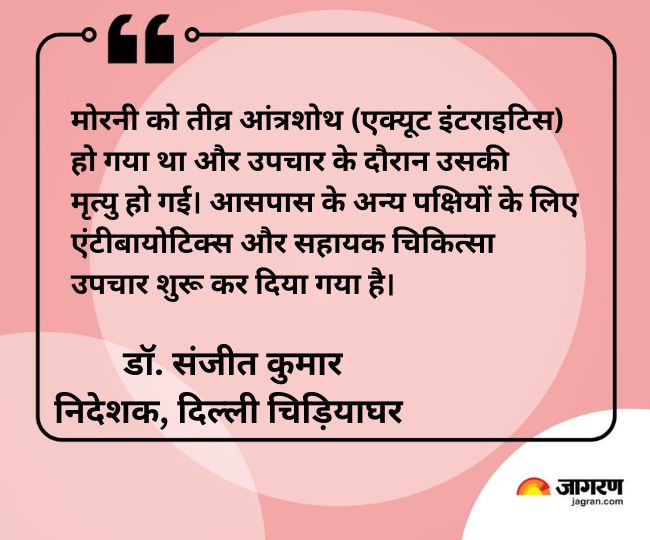 सूत्रों के मुताबिक वन्यजीव को देखने के लिए डॉक्टर आते हैं, लेकिन कुछ समय से डॉक्टर भी नहीं आ रहे हैं और न ही वन्यजीव की बीमारी या अन्य कोई रिपोर्ट उनकी कीपर या इंचार्ज के जरिये दी जा रही है। मोरनी की मौत की सूचना मिलने के बाद चिड़ियाघर प्रबंधन ने मोरनी का पोस्टमार्टम भी कराया है। मोरनी का 19 नंबर बाड़ा था।