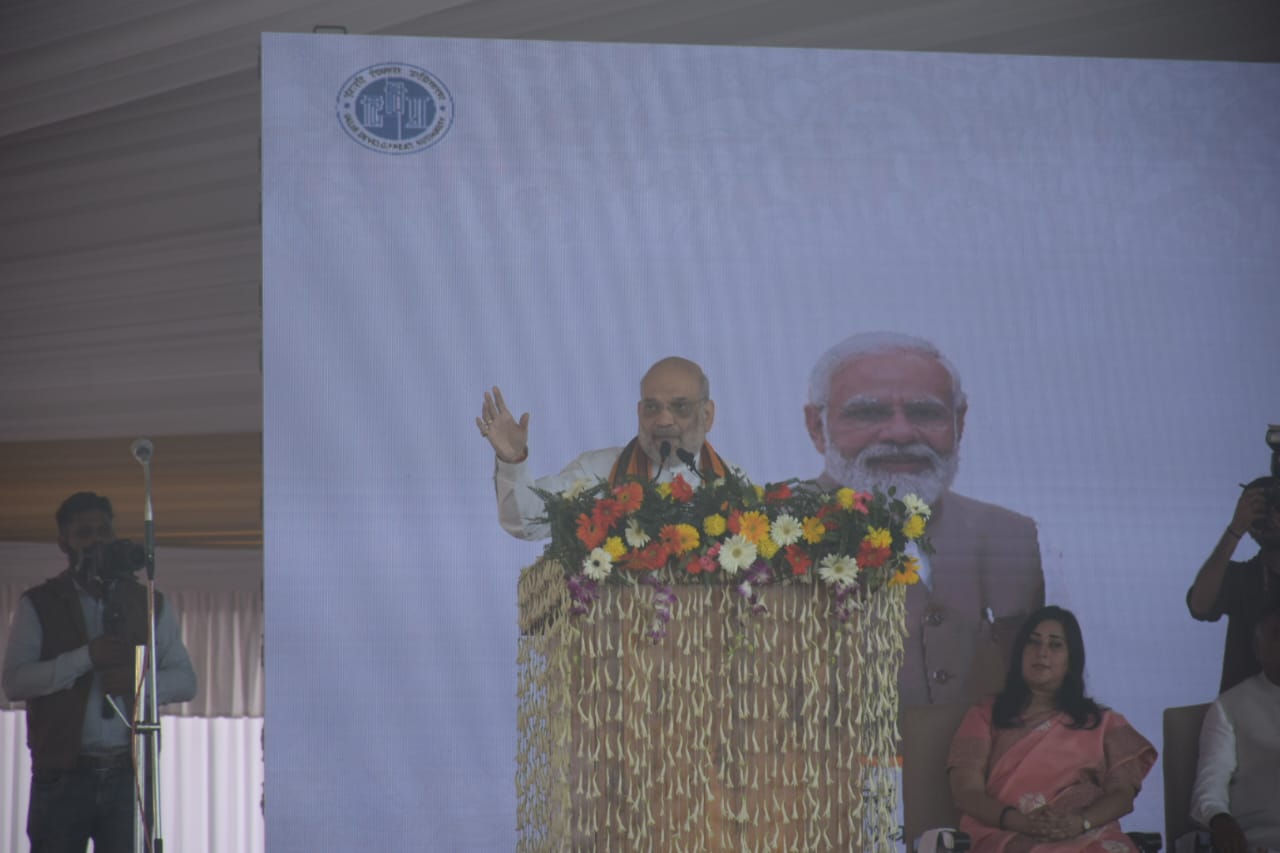 सराय काले खां बांसेरा पार्क में भगवान बिरसा मुंडा की प्रतिमा का अनावरण करने के बाद लोगों को संबोधित करते गृहमंत्री केंद्रीय गृह मंत्री अमित शाह