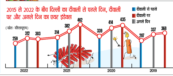 वायु प्रदूषण पर नियंत्रण के लिए हर साल दिवाली के आसपास पटाखों पर नियंत्रण लगाया जाता है।बावजूद इसके इन दिनों राजधानी की हवा में सांस लेना मुश्किल हो जाता है। पटाखामुक्त दिवाली और ग्रीन पटाखों को लेकर तस्वीर अभी तक भी पूरी तरह से साफ नहीं कही जा सकती है। दिवाली पर लंबे समय से पटाखे जलाए जा रहे हैं।