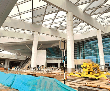 आइजीआइ के टर्मिनल-1 के विस्तारित हिस्से पर अभी चल रहा है कार्य l जागरण