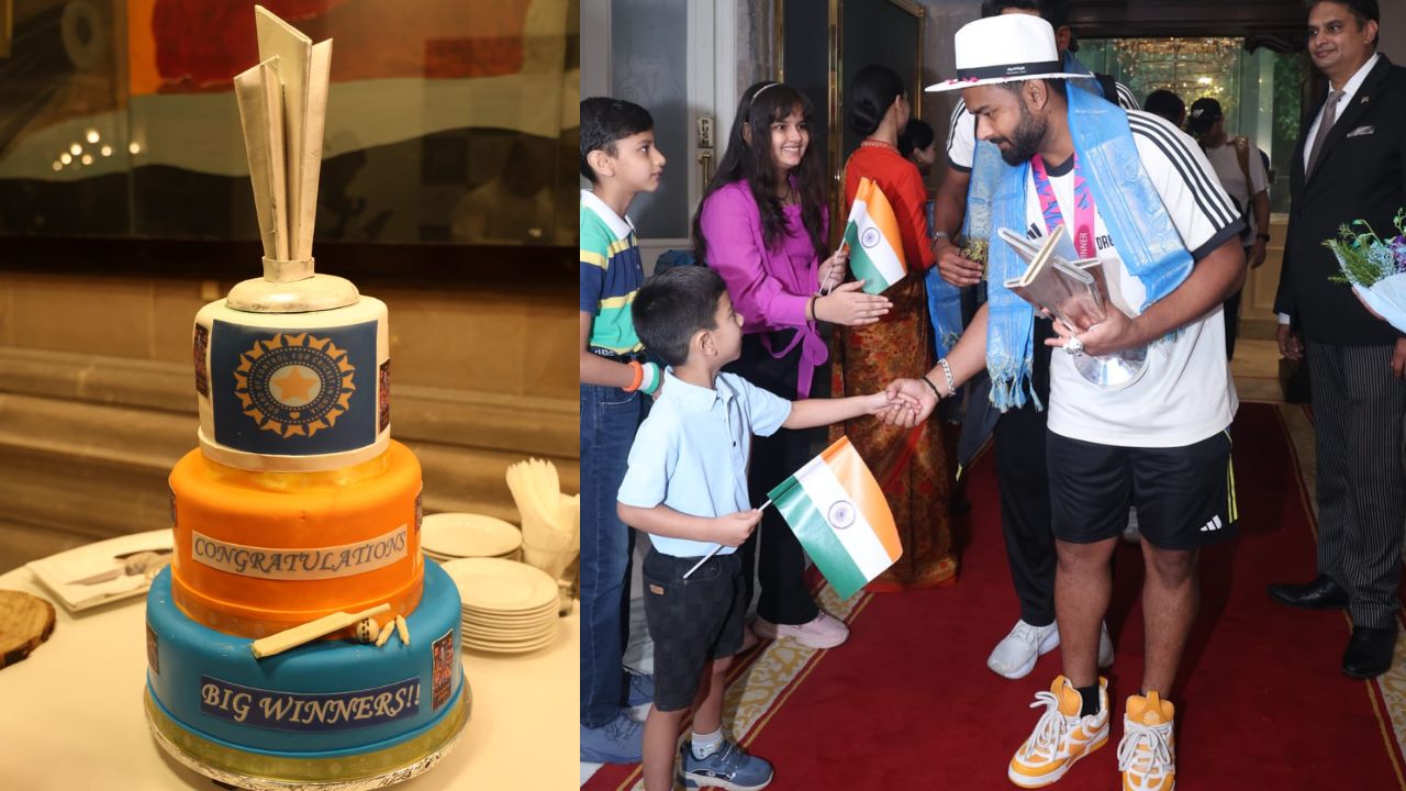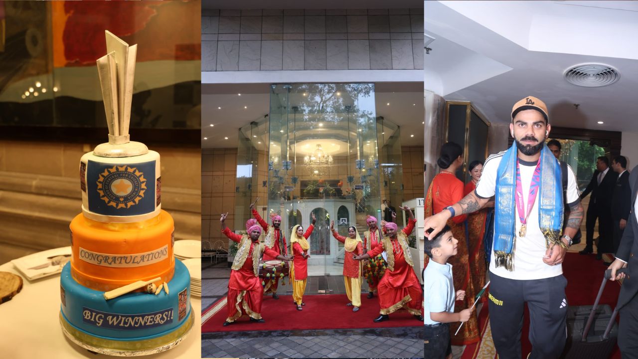 वहीं, होटल में अंदर पहुंच कर खिलाड़ियों का तिलक किया गया और माला पहनाकर व ढोल बजाकर जोरदार स्वागत किया गया। ढोल की थाप पर भारतीय टीम के कप्तान रोहित शर्मा और सूर्या कुमार ने भांगड़ा करके जश्न मनाया। होटल की ओर से जीत का जश्न मनाने के लिए विशेष केक भी तैयार किया गया है।